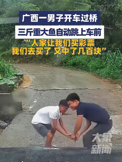“这就是命啊!”9月9日,广西桂林,一男子开车过桥,突然,一条3斤重的大鱼从河里跳上桥面,男子激动地急忙停车捡鱼!回去和朋友分享这一好消息后,朋友就建议他去买彩票,没想到,男子买彩票真的中了几百块。网友:好运来了挡也挡不住! 据大象新闻9月10日消息,一名男子驾车途经附近村子的一座小桥时,一条重达三斤的大鱼竟直接跳到了车前,令人惊愕不已。 赵先生(化名)是一名货车司机,那天有一车很重要的货要给客户送去,但不料刚起床就发现外面在下小雨,这时赵先生十分沮丧觉得上天偏偏要挑送货的时间下雨,觉得自己很不幸运,随后他害怕货物被雨淋着,于是就给客户说晚一点送到。 等雨停了之后,赵先生和几个同伴就一起开车去给客户送这批货,然而就在他们经过村里的一个小桥的时候,抵达桥面时,突然看见自己的车前面有一条鱼在桥面上蹦哒。 随后赵先生赶紧下车将那条鱼捡了起来,发现那条鱼的重量还不小,掂量着可能会有两三斤,同伴在车上调侃说这个桥已经修了数几年了从来都没有人听说能在桥面上捡鱼的,说赵先生今天可真是幸运,买彩票的话肯定能中。 赵先生觉得今天早上送货遇见下雨天可能就是给这条鱼做铺垫吧,随后等他把货给客户送去,卸完把几个同伴送回家之后,决定听同伴的去彩票店碰一碰运气。 他来到彩票店就直接让工作人员给他拿了几张刮刮乐,随后他带着紧张的心情刮完了,第一次刮彩票的他根本就不知道自己中了没中,于是他就赶紧问工作人员,不料这时工作人员说他中了几百块钱。 他觉得自己今天一天真的是太幸运了,于是就把这件事情发到了短视频平台上面。原本他就是想记录一下这样的瞬间,不料却在网上引起了广大网友的热评。 有些网友调侃道说张先生简单根本就不是鱼,简直就是“锦鲤”啊,能给他带来这么多好运,不用建议赵先生回家之后一定不要把这条鱼吃了,养起来说不定还能带来更多的好运。 而在现实生活中会有很多这样的事情发生,但需要一双我们能够发现的眼睛,所以建议我们在空闲的时间不要一直刷手机,多看看外面的世界,发现属于自己的独特“小幸运”。