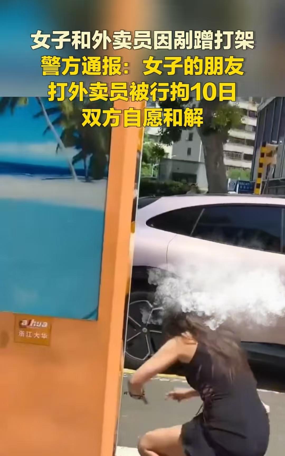 海口,女子的车和外卖员的车发生了刮蹭,都觉得是对方的错,起了争执。女子先动手打了