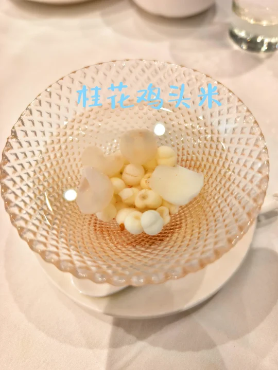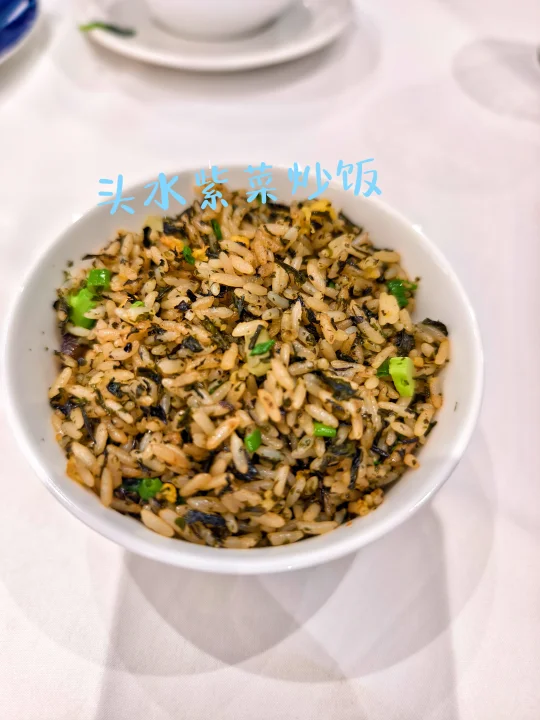 🔥主食是头水紫菜炒饭,甜品是桂花鸡头米,打卡还送了冰淇淋。