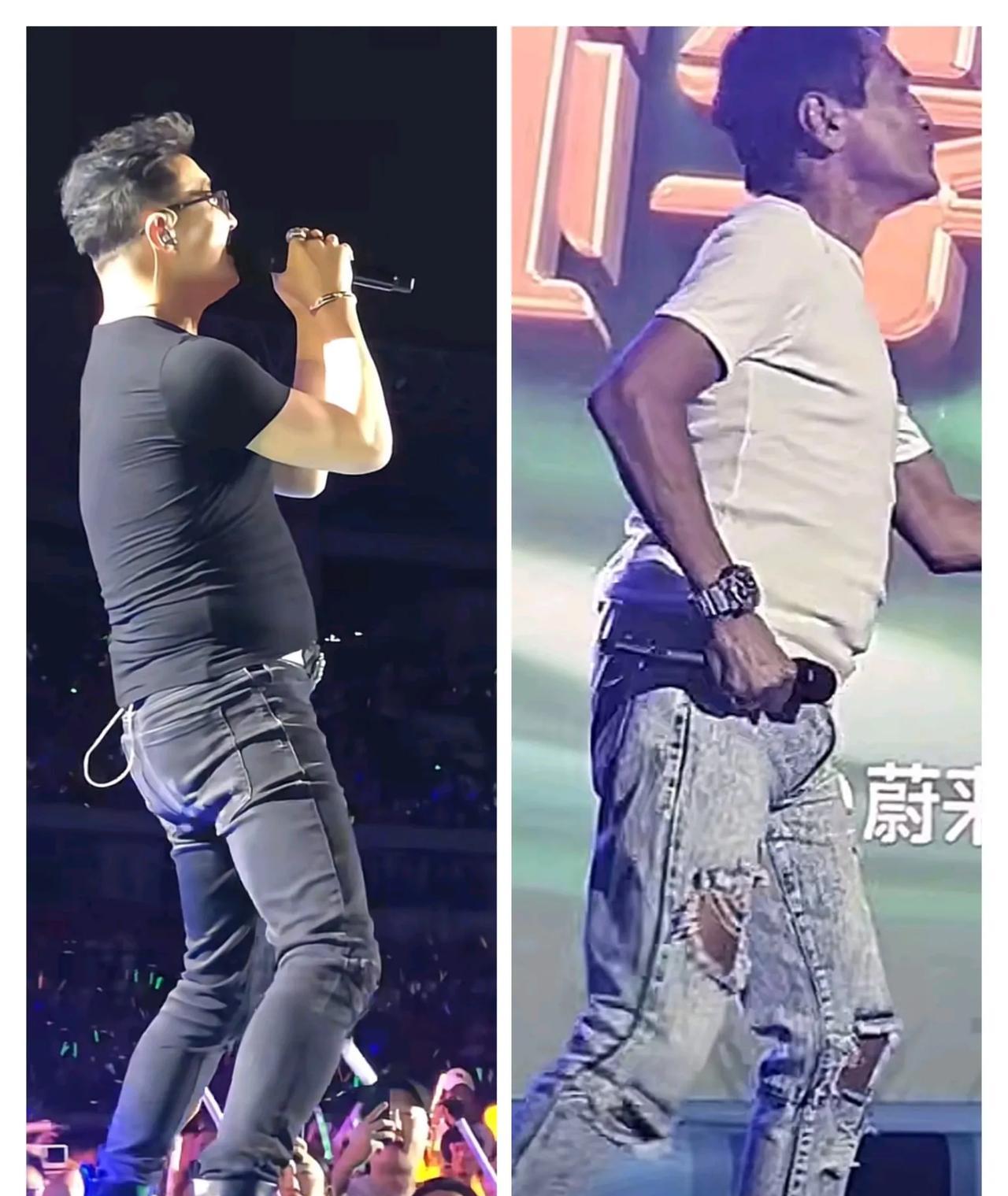 怎么刷到的男明星都穿着紧身裤, 而且拍摄角度也是很辣眼睛。 张杰的衣品时好时坏的, 但只要选这种短款上衣+卡码裤子, 感觉都不好看,虽然臀部还挺翘的。 但娜姐还是得提醒杰哥,卡码要拍大啊! 还有吴奇隆,汪峰,齐秦, 这几个中老年明星, 依然坚持着年轻时候的癖好, 喜欢穿紧身裤, 说真的,真不好看。 看图四,网友给吴奇隆P的宽松衣服, 整个人瞬间清爽不少, 不仅显年轻,还完美隐藏了身材短板。