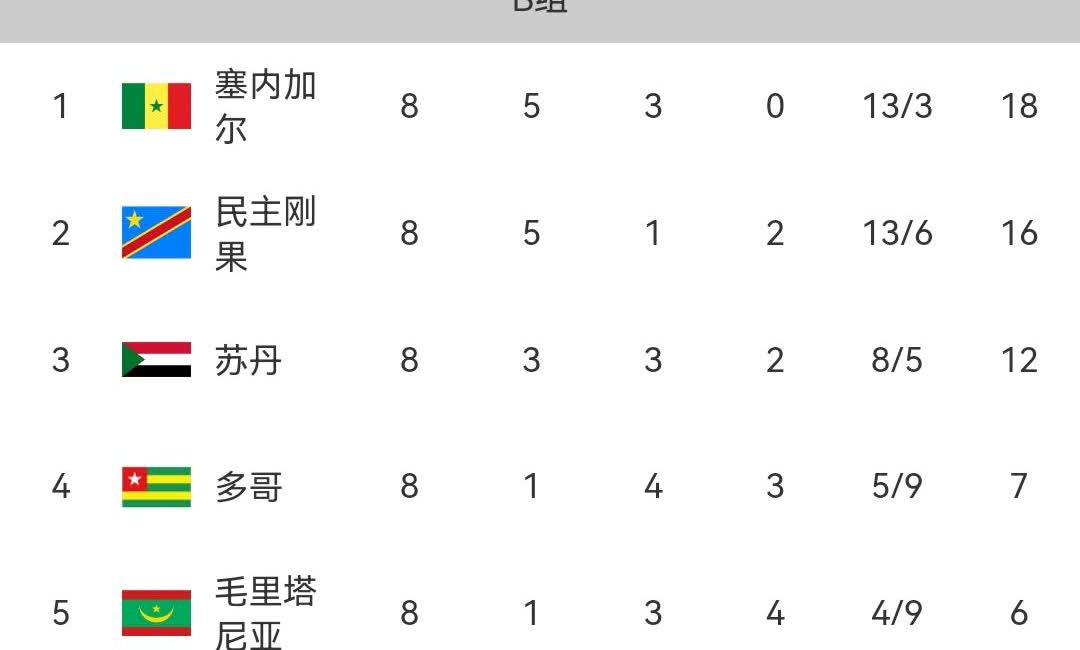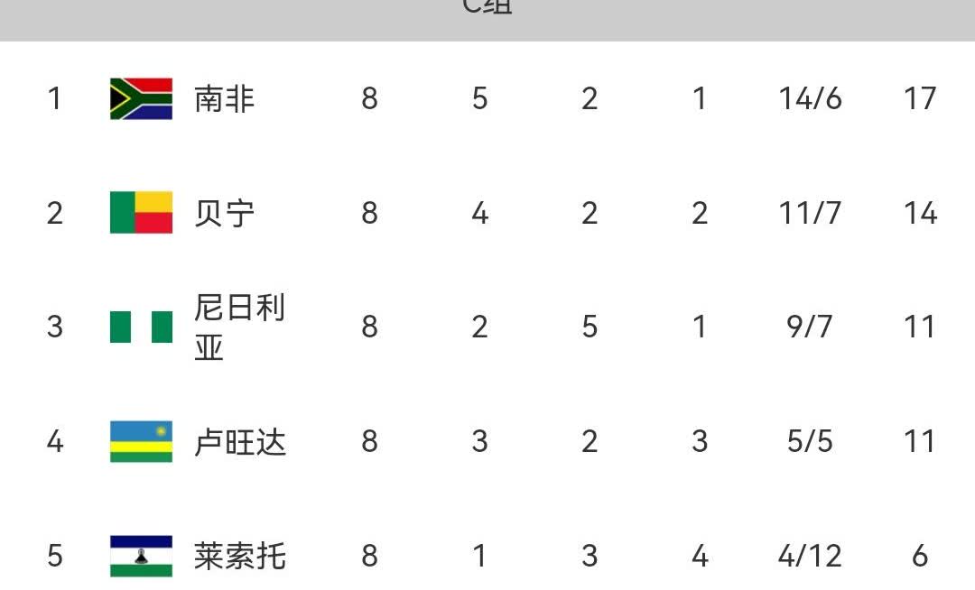 世预赛非洲区 世预赛非洲区预选赛第八轮战罢,尼日利亚、喀麦隆、科特迪瓦、阿尔及利亚全部翻车,四支球队三平一负,出线形式不容乐观,来看下具体赛果和排名! A组法老、马尔穆什领军的埃及以6胜2平排名小组第一,最后两轮将迎战小组第四和倒数第一,不出意外埃及小组第一已是囊中之物! B组头名之战在塞内加尔和民主刚果之间展开激战,最终马内、杰克逊领衔的塞内加尔让二追三逆转对手领跑B组! C组南非战平尼日利亚,三分优势领跑积分榜,贝宁排名第二,非洲雄鹰尼日利亚彻底沉沦,8轮过后仅拿11分落后南非6分,出线堪忧! D组榜首大战喀麦隆0-1不敌佛得角丢掉晋级主动权,两轮追四分,喀麦隆不仅要自己争气,还要祈求佛得角丢分! F组科特迪瓦在榜首大战中战平加蓬,两队差距只有一分! G组阿尔及利亚战平几内亚无缘提前晋级,不过领先第二名四分的他们,最后两轮赢下一场就可直通世界杯! I组加纳以6胜1平1负积19分排名小组第一,领先第二名三分,最后两轮将连战中非和科摩罗,只要正常发挥,加纳也将晋级世界杯! E组的摩洛哥和H组的突尼斯已经直通世界杯!