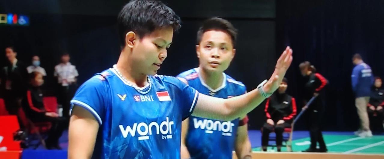 李宁香港羽毛球超级500公开赛女双比赛,志田千阳/五十岚有纱对阵印尼拉哈尤/拉马丹蒂组合。 第一局,志田千阳组合8:2开局,17:10拉开比分,印尼组合追到只差3分,志田千阳组合还是21:16赢下首局。五十岚有纱的杀球很犀利,开局频频得分。 第二局,半场日本组合11:7领先,被追到12:13,但是马上她们又扩大领先18:14,19平时,日本组合21:19险胜,大比分2:0获胜。 日本组合配合还是不够默契,中间位防守失误较多,不过志田千阳的封网,五十岚有纱的扣杀都发挥出色。