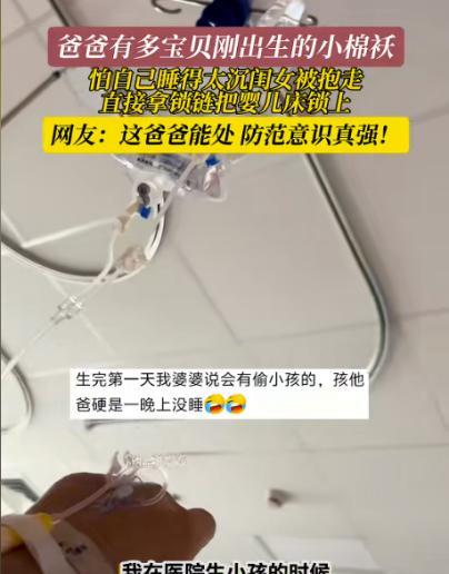 “心眼子真多!”4日报道,湖北一女子生完孩子后,丈夫担心晚上睡得太沉,怕宝宝半夜不见了,就拿出锁链把宝宝锁在床上,丈夫的手就放在宝宝身上,一有动静就能发现,女子看到后懵了,网友:这父亲的范意识是真高! “我看谁能把我的宝贝抱走。”王某(化名)满意的看着自己的杰作说道。这位湖北新手爸爸用一条锁链将婴儿床牢牢锁住,自己的手还始终搭在床栏上,确保任何动静都能第一时间察觉。 事件发生在湖北省某医院产科病房内。刚刚升级为父亲的王某因为担心医院人员复杂,孩子安全问题,想出了这个特殊的保护方式。当妻子半夜醒来看到这一幕时,整个人都愣住了,随即用手机记录下这个场景并分享到网络。视频迅速引爆社交媒体,24小时内获得超过200万点赞和10万条评论。 网友评论呈现鲜明对立。一部分人称赞爸爸责任心强:“这爸爸太负责了”、“现在偷孩子的新闻太多,小心点没错”;另一部分人则认为做法过于极端:“锁链会不会伤到孩子?”、“这是防贼还是防娃?”。育儿专家指出,这种行为反映出新手父母普遍存在的育儿焦虑,但建议采取更科学合理的防护方式。 事件当事人王某事后解释:“第一次当父亲,太紧张了,就怕孩子出什么意外。”妻子也表示理解丈夫的用心,但认为方法可以更温和些。医院产科护士长透露,该院每年接生超过3000名新生儿,从未发生过婴儿安全事件。 “爱孩子也要用对方法。”一位资深育儿师评论道,“过度保护反而可能限制孩子的成长空间。”建议新手父母多参加医院组织的育儿课程,学习科学的护理方法,既保障孩子安全,又避免不必要的焦虑。 这个事件虽然令人啼笑皆非,但也提醒社会要关注新手父母的心理健康。需要建立更多的科学育儿指导和支持系统,帮助年轻父母顺利度过这个特殊时期。家庭成员之间也要互相理解支持,共同营造轻松的育儿环境。 育儿之路需要智慧与理性并重。让我们用科学知识替代过度焦虑,用理性关爱取代盲目保护,共同为孩子们营造一个既安全又健康的成长环境。这才是真正对孩子负责任的态度,也是现代父母需要学习的重要课程。 信息来源: 文|何夕 编辑|史叔