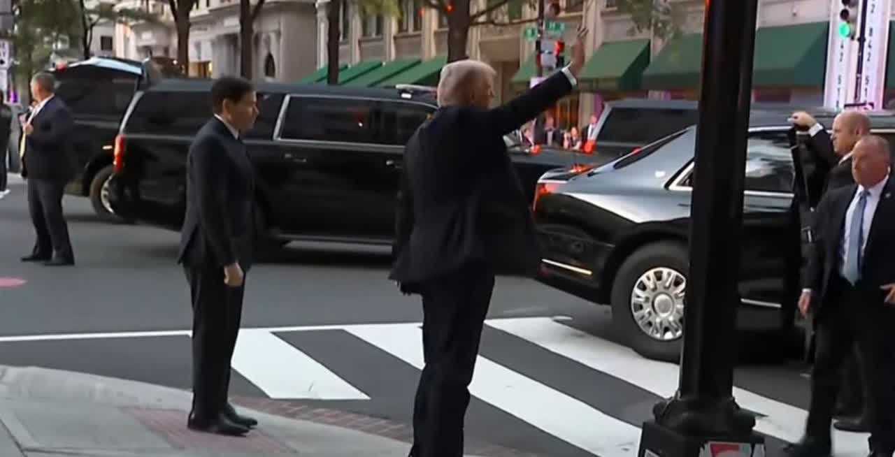 特朗普在华盛顿外出就餐,在街头亮相,周围民众欢呼声不断。特朗普以此证明自己对华盛