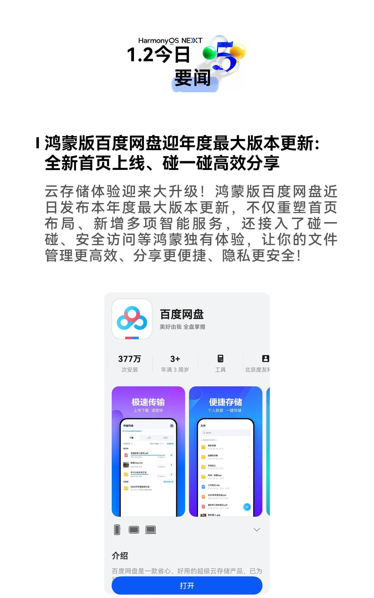 9月11日鸿蒙生态日日新PLOG:鸿蒙版大众点评再升级,用户服务+内容生态双线发力,体验更优;鸿蒙版百度网盘迎年度最大版本更新,全新首页上线、碰一碰高效分享;YY、钉钉、闲鱼等多款应用也迎来重要更新;鸿蒙操作系统 5,更安全、更流畅、更智能,欢迎在“我的华为”App>升级尝鲜报名体验。#鸿蒙5大有不同##HarmonyOS5#