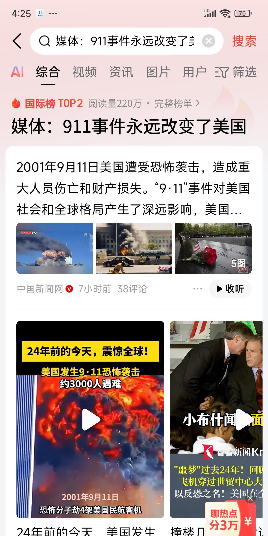 美国媒体说911事件改变了美国,我个人觉得没有改变美国,反而是美国自911事件后变本加厉发动战争,打伊拉克,打阿富汗,打叙利亚,斩首伊朗高层,怎么改变美国的?美国越来越猖狂,支持以色列武器侵略加沙,轰炸也门,叙利亚,伊朗,黎巴嫩,卡塔尔,与911事件是大巫见小巫,九牛和一毛相比,这些国家损失巨大的多,美国并没有汲取911事件教训,这些年屠杀了太多平民百姓。美国犯下的血绩还没有偿还呢!#伊朗怒批美国# #美国轰炸伊朗# #伊拉克危机# #美国入侵伊拉克# #911恐袭# #伊朗军事大事件# #美国911预言# #911法则# #伊朗德黑兰袭击# #美军伊拉克行动# #911战争# 今天是911事件24周年。