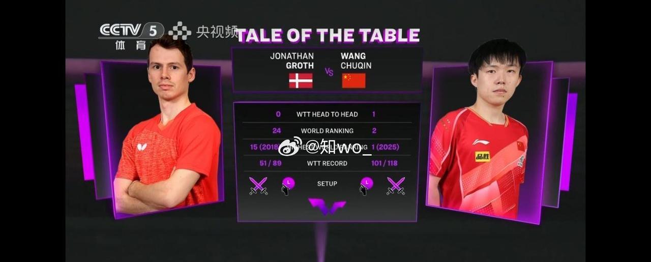 这是WTT冠军赛澳门站男单刺轮1/8决赛。 王楚钦25岁,世界排名第2位。 丹麦
