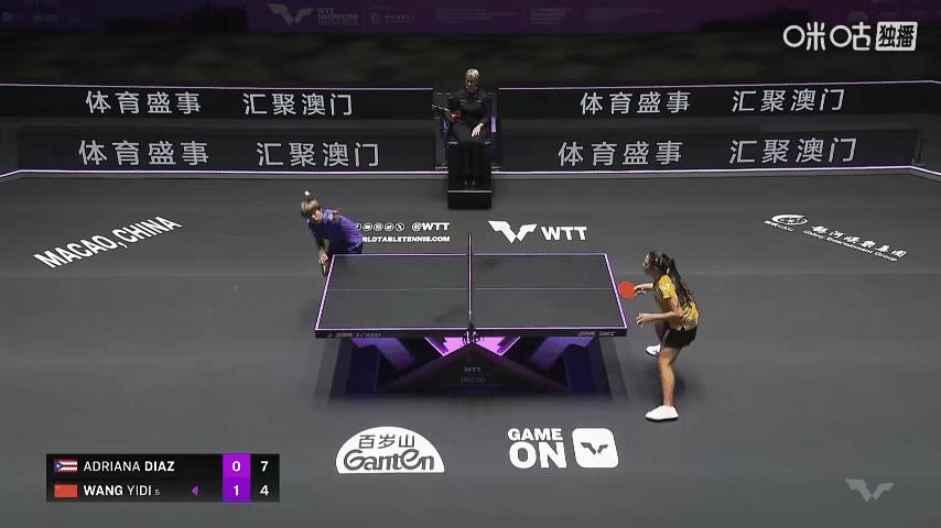 不愧是“北美小钢炮”,迪亚兹今天手感可以啊, 第二局大迪心思不稳定,打的太着急了,火急火燎的,也接不好迪亚兹的高球,大迪接连打飞了三个高球,还好最后一个控制住了,总算把第三局稳下来了。 这是WTT冠军赛澳门站女单1/8决赛,评论区继续播报战况!