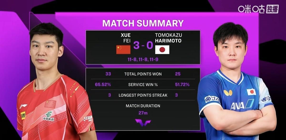 今天真高兴! 今天是最高兴的一天,都是薛飞带来的! 今天中午,2025WTT澳门冠军赛男单1/16决赛,国乒直拍名将薛飞以3:0横扫日本的张本智和,强势晋级男单16强。 薛飞带给我们的这个惊喜太大了! 薛飞起飞!国乒继续加油!