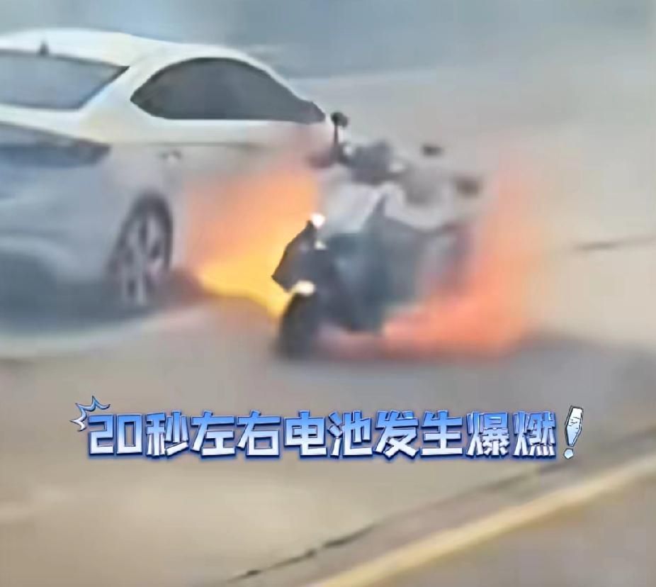 外卖车电池爆燃喷火,一旁小汽车遭殃!9月10日,福建泉州一外卖小哥正常行驶途中,