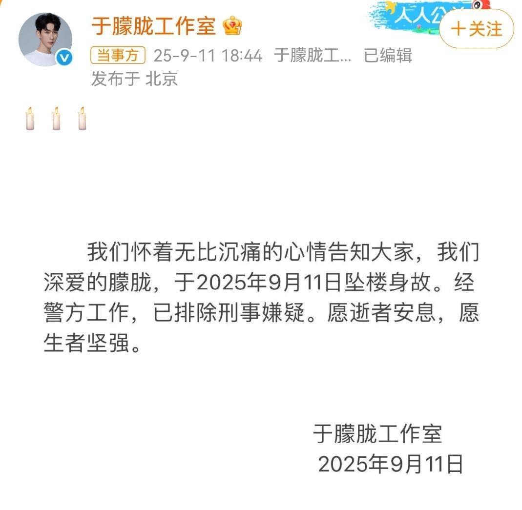 “兜里装着两个朋友的劳力士手表”“纱窗被于朦胧扣开了”……最先发文的这两句话可以说具有极强的暗示性和误导性!在警方的蓝底白色最终公告没出来之前,其他消息都是谣传。 一个三十多岁拥有大好前途的青年男演员,正直事业上升期。太令人心痛了。说真的,个人一直对阴谋论不感冒。警方已经排除刑事嫌疑,那就剩两种可能,一个是自杀,一个是意外。跟几个朋友在朋友家聚会。自杀可能性极低。那就是意外了。等待警方的最后公告吧。 我看过《三生三世十里桃花》,于朦胧扮演白浅的哥哥白真。也许是你在这个世界的旅程已满,时间到了,回归本源!一路走好,白真上仙![祈祷] #你对于朦胧坠楼传闻有什么看法# #于朦胧确认坠亡 前一日账号还在线# #于朦胧演的哪个角色最令你印象深刻# #你看过演员于朦胧参演的哪部作品# #现实生活中的于朦胧是什么样的人#