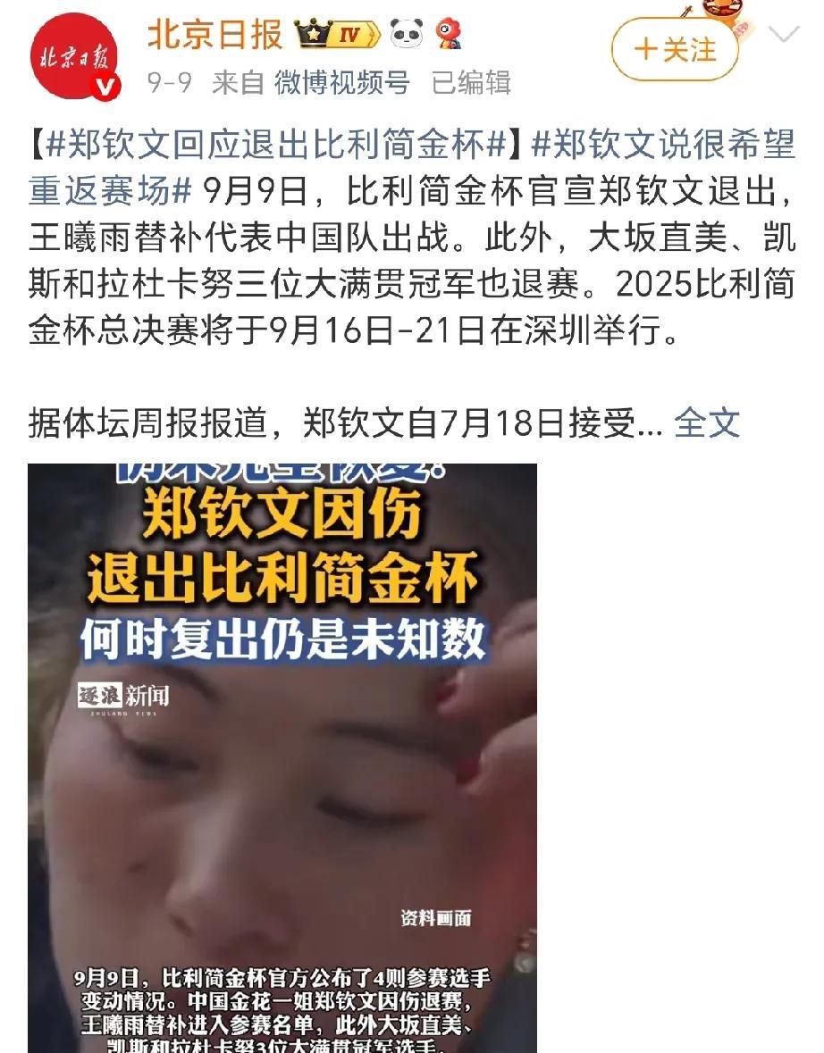郑钦文剩余赛季会参加哪些比赛? 虽然网络上众说纷纭,但综合一些媒体信息,还是能看出一些端倪。 一、9月16日的比利简金杯:郑钦文已经官宣退赛。 二、9月24日开幕的中网:大概率不会参加。 首先是中网和比利简金杯两站比赛时间非常接近,以郑钦文的身体条件,如果不能参加比利简金杯,当然也可能不会参加中网。 其次,中网的宣传海报已经出炉,作为中国最优秀、最有热度的球员,郑钦文并未出现在海报中,这是不是也释放出了一些信号呢? 三、10月6日开幕的武网:武汉文旅局官网透露,郑钦文要参赛。 四、10月13日的宁波500赛:有媒体透露郑钦文已经报名。 五、10月20日的东京500赛:作为去年的冠军,加上复出后要多打比赛热身,大概率会参赛。 六、11月9日全运会:不参加年终总决赛的情况下,大概率会参赛吧。 #新锐创作者成长计划#