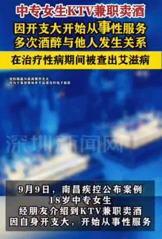 太令人唏嘘!江西南昌一名年仅18岁的中专女生,在朋友介绍下进入KTV卖酒。起初只是单纯推销酒水,但因收入难以维持开销,最终踏入灰色交易。没想到,没多久她就染上了性病,治疗期间还被查出感染艾滋,懊悔莫及。 “小琳,钱要花在该花的地方,别盲目攀比。”父母每次给生活费时总是这样叮嘱。 可小琳听在耳里,却常常觉得烦。 在中专读书的她,看着同学们用名牌、换新手机,自己却要精打细算度日,心里不免失落。为了“撑面子”,她的开销越来越大,父母给的钱远远不够。 正愁无路子时,朋友建议她去KTV卖酒:“提成高,赚得快,你可以试试。” 小琳心动了,当即开始尝试。 一开始,她只是努力推销酒水,逗客人开心,收入也有所增加。可很快,她发现有的女生轻轻松松就能赚到更多钱。打听后才知道,那些人提供的是不法服务。 “干几个月就能攒下一大笔钱,想买什么都有。”抱着这样的念头,小琳最终没能抵挡诱惑。 她只有18岁,又是学生身份,很快便吸引了不少客人。既推销酒水,又提供灰色交易,她的收入果然水涨船高。 有了钱,她立刻买下了渴望已久的衣服和化妆品,终于能在同学面前“挺直腰杆”。 然而,这样的日子并未持续太久。 很快,她感觉身体不适。一开始只是瘙痒,她并未放在心上。但情况越来越严重,还伴随发热。直到去医院检查,小琳才彻底崩溃——检查报告显示,她不仅感染了性病,还确诊为艾滋。 年纪轻轻的她,面对这样的结果,简直无法接受。此刻,她才想起母亲的叮嘱,可一切都追悔莫及。 消息一出,引发网友热议。有人替小琳惋惜,认为她年纪轻轻就被毁了后半生;也有人痛斥其虚荣攀比、不务正业,觉得如今的下场完全是咎由自取。 俗话说,君子爱财,取之有道。赚钱本无错,但应当通过正当途径。做家教、兼职餐馆、发传单,虽然辛苦,收入有限,却光明正大、心安理得。小琳却选择了“捷径”,结果不仅断送前途,还可能涉嫌违法。 根据《治安管理处罚法》第66条规定,卖淫嫖娼可处10至15日拘留,并处5000元以下罚款;情节较轻的,也要拘留或罚款。嫖客同样要承担法律责任。 如果小琳的感染源于他人故意传播,那对方还可能涉嫌“传播性病罪”,须追究刑责。而若在小琳醉酒、无意识或非自愿情况下发生关系,则已触及强奸罪的边界,同样要承担刑事责任。 但对小琳而言,再追责也无济于事。她只能接受治疗,在无尽悔恨中继续生活。 此事再次警醒世人: 靠自己双手挣钱才是正道。妄想“躺赚”,不仅可能触法,还会让健康和人生尽毁。一旦染上恶疾,悔之晚矣。