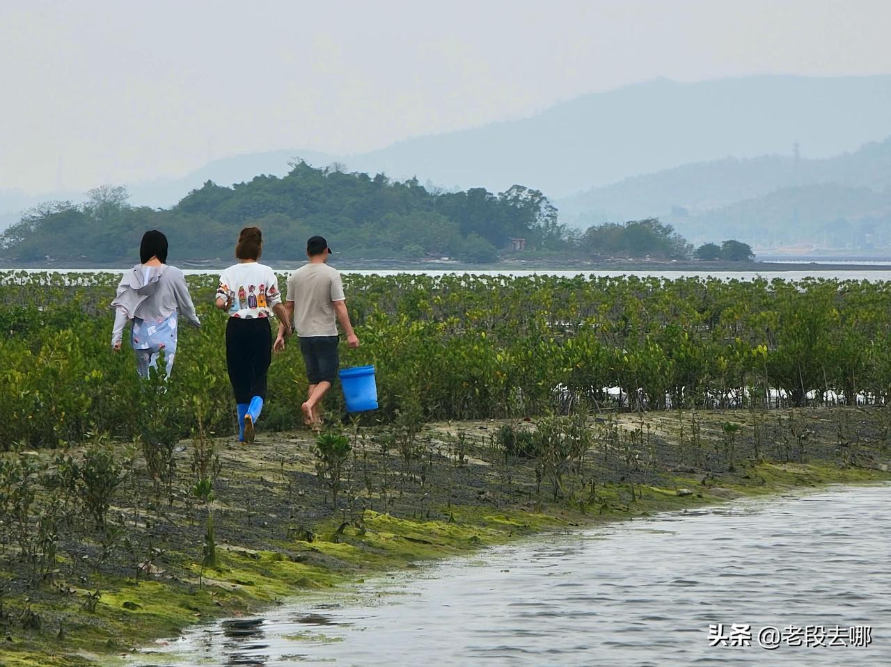 看了很多挖蛏子的视频,觉得非常有意思,一把盐下去,蛏子就冒出来了。一直都以为深惠这边没有可以挖蛏子的地方,这次和朋友来到盐州岛红树林的滩涂,趁着退大潮,终于体验了一把撒盐抓蛏子的乐趣。 其实抓蛏子有两种方法,一种是直接挖;另一种是拿细铁线勾出来。勾出来的死的快,有沙不好吃。挖的可以先用铲子划开一点泥,看到洞口后撒盐等蛏子出来;也可以直接一铲子下去,这样快点,撒盐好玩点。不管是勾出来还是挖出来,都需要能准确地识别出哪些是出蛏子的洞口。