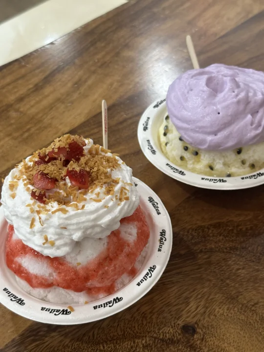 在可爱岛一周,吃了六碗冰,从第一碗的惊艳,吃到最后一碗的不舍。虽然夏威夷很多小店和超市都有各式各样的刨冰,但多数是普通甜水口感,而Wailua Shave Ice的这个泡沫搭配简直是太惊人了!就像第一个发明出在茶里加奶盖的人一样惊人。如果只能选一碗我建议Ube口味——ube的身体和ube的头颅,再加上嘎嘣脆的椰子碎,ube爱好者必然欲罢不能。