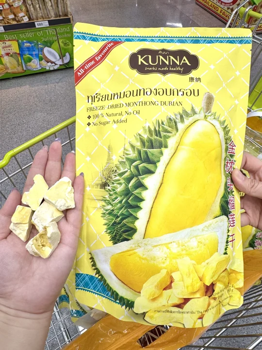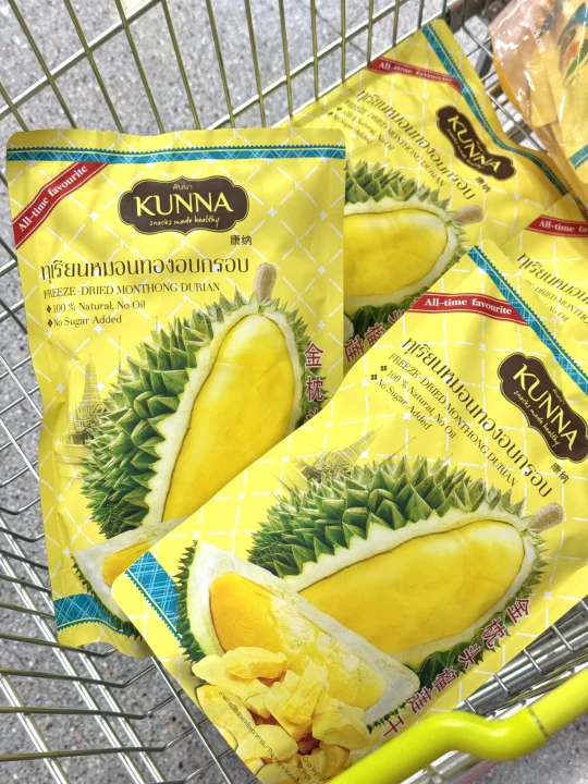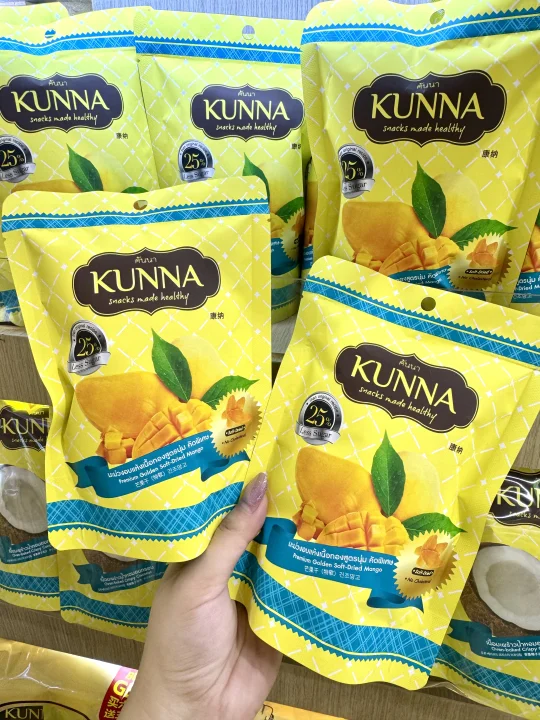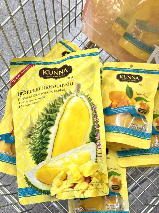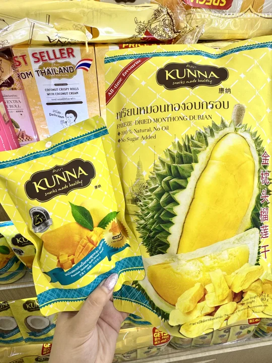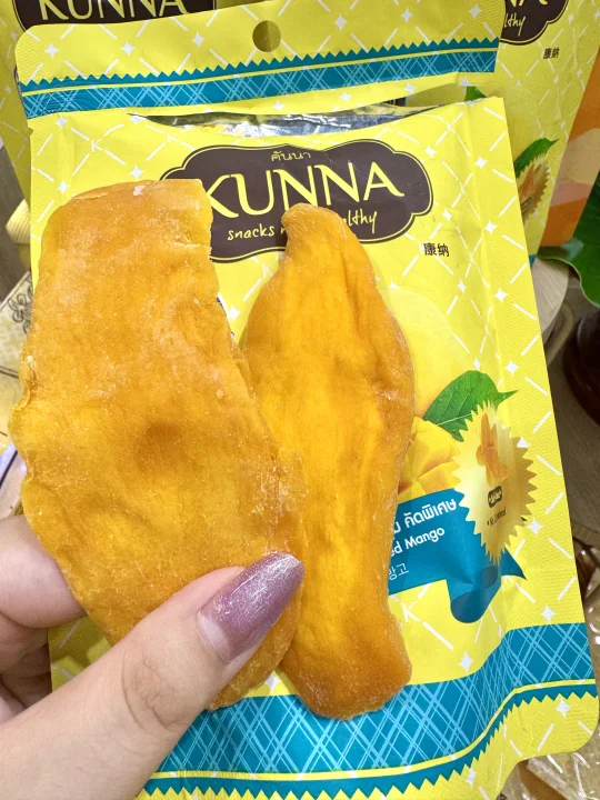 家人们泰国这个榴莲干真的好吃哭了!第一口就让人惊艳的感觉!酥酥脆脆的可太好吃了😋每一块果肉都大块又厚实 浓郁的口感真的让人无法拒绝‼️也不会太甜真的刚刚好😘作为伴手礼可盲入🥰无添加剂真的放心吃🙏Kunna这个国民品牌在泰国有多火不用过多解释了吧🔥他家的芒果干也是一绝‼️香气非常浓郁 就像万里香芒果一样‼️口感特软糯‼️每一片都超大块肉质也很饱满‼️酸甜爽口芒果脑袋真的没办法拒绝🥰有正常甜度和低糖25%糖度两个版本可以选择!减肥的姐妹推荐选择低糖版本哦‼️