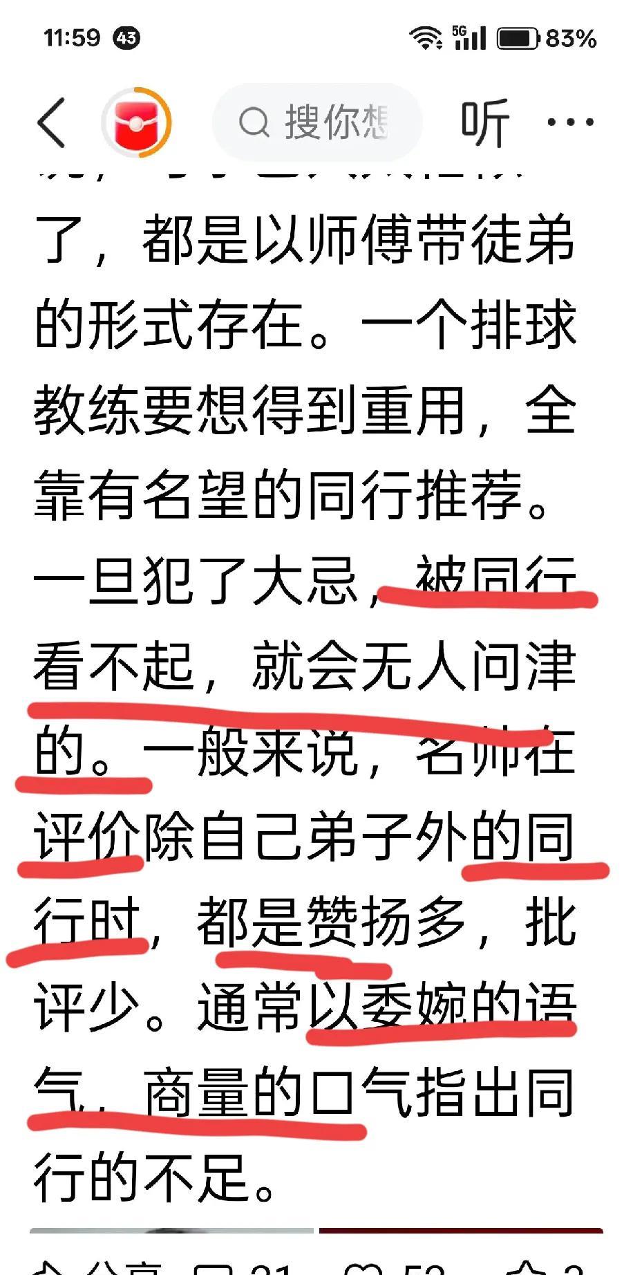 脏汉又大放厥词了 世锦赛中国女排八强不入,李焕宁指导谈了的对瓜队组队和新老交替的看法,引起极大关注和广大球迷认可。可有一些域迷很不舒服,好似捅了它们的马蜂窝。 这不那个脏汉有跳出来了,说李教练“诋毁同行犯了大忌”。还上升到个人修养的高度,是”不义之举”“被同行看不起,就会无人问津”。帽子扣的不小,也不知那句话诋毁了。 呵呵,难道李焕宁教练说的不是不对吗?指出的不正是瓜队存在的问题吗?不正是世锦赛铩羽而归的症结所在吗? 李教练只是谈了自己的看法,难道要让他给PX打个电话?L主任会接吗?和菜勇坐下来去商量,这可能吗?自菜菜到菜勇,在选材用人上,广大球迷看的清清楚楚,许多呼吁他们听了吗?还不是刚愎自用一意孤行?希望有更多的李焕宁站出来,更希望中国女排回归到正确的发展道路上来。