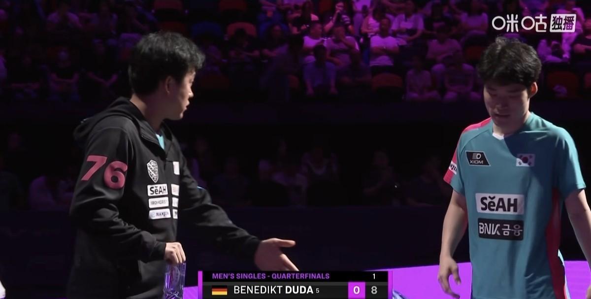 张禹珍发挥神勇,淘汰德国一哥,赛季首进男单半决赛! 今晚,2025WTT澳门冠军赛男单1/4决赛,德国的贝内迪克特·杜达对阵韩国的张禹珍。 杜达现排名世界第8,张禹珍排名世界第28。 这是两人在国际大赛中的第二次交锋。 4:2(11:8、9:11、8:11、11:7、13:11、11:6)!这场比赛双方实力接近,比赛跌宕起伏,一波三折,张禹珍发挥可谓神勇。最终张禹珍战胜杜达,本赛季首次打进男单半决赛。 恭喜张禹珍! 半决赛,张禹珍将对阵中国的王楚钦。