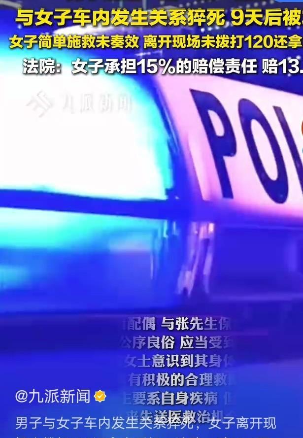 陕西西安,一女子和一名患有心脏慢性病的男子在车内亲密,结束后该男子陷入休克状态,女子在施救手段使用无效后,不仅没有选择报警,反而拿走男子的手机。九天后,民警找上了门,女子表示:他的死不关我的事。 据极目新闻报道,事情还要从2023年2月的一天说起,这一天张某下班回家,在路过某公园的时候,张某因为想放松一下心情,于是便把车停在了公园旁边的路上。 在下了车以后,张某习惯性的拿出手机,摇到了一个28岁左右的美女,手机显示她和张某仅有一公里的距离。 而张某在看到了这名张女士的照片后,当即非常动心,于是他试着和张女士发了几条搭讪的消息,对此张女士也爽快的回应了他。 很快,两人就见面了,因为发现张某也长得比较帅,所以在张某提出那种要求后,张女士也欣然答应了张某的要求。 自那以后,两人时不时的会在一起约会,在2023年3月3日晚,张某又一次约了张女士,而张女士也爽快的答应了张某的要求。 当晚,两人坐着张某的车来到了某街道,这里虽然是街道,但是却是非常的僻静。 两人没有废话,开始进行那种事情,在进行的过程中,张某突然感觉身体不适,在持续了一会后,张某陷入休克状态。 这让张女士大惊,连忙对张某进行施救,但施救了40分钟后,张某并没有好转,甚至停止了呼吸。 张女士非常害怕,于是便拿走了张某的手机。 事后张女士解释,说她拿走张某的手机,不是贪图张某的财物,而是因为她害怕民警在张某的手机里发现她和张某不伦的关系。 九天以后,张某被一名环卫工人发现,随即民警便通过张某的家人提供的电话号码,定位到了张某的手机。 最终张某的事和张女士的事被张某的家人知道了,他们随即把张女士告了。 那么从法律角度,该如何看待张女士所遭遇的这种事情呢? 根据《民法典》规定,若朋友之类的社会人同伴出现突发情况时,相关当事人无法定强制救助义务。若当事人自愿实施救助行为,即便造成一定的损害,当事人也无需承担民事责任。 本案中,张女士和张某属于朋友之类的社会关系,她并没有施救的义务,因此即便张某因此死亡,她也是没有义务要承担张某的猝死责任的。 但是,张女士和张某发生关系的地方非常隐蔽,又是在狭小的汽车里,因此一般人很难知道张某的不利病况。 在张某休克后,张女士是他身边唯一知晓他危险境地的人,因此其有一定义务要对张某的事情做出补救措施,所以张女士在这种情况下需要承担张某的猝死部分责任的。 但是,许女士和张某发生关系的地方非常隐蔽,又是在狭小的汽车里,因此一般人很难知道张某的不利病况。 在张某休克后,张女士是他身边唯一知晓他危险境地的人,因此其有一定义务要对张某的事情做出补救措施,所以张女士在这种情况下需要承担张某的猝死部分责任的。 那么张女士需要承担什么责任,她是否构成不作为罪? 根据《刑法》相关规定,不作为犯罪指的是有履行行为的义务,但是却没有履行义务,这种行为被判处为不作为罪。 不作为罪一般可界定为不作为式的故意杀人罪,以及过失致人死亡罪,其中前者量刑为3至七年有期徒刑,情节轻微者三年以下,后者也是同样的裁判标准。 本案中,张女士对张某并无法定救助义务,所以即便她逃走,也不构成不作为罪。 但是,许女士在给张某进行了施救行为的干预后,她便有了对张某其至于危险境地的预见性。 在这种情况下,如果张女士不选择采取施救手段,那张某的死亡概率会大大增加,因此她需要负担一定的救助义务。 张某的死因是突发急性心脏病,加上张女士并不知晓张某的危险状态,因此其虽然负有救助张某的义务,但并不需要负主要责任? 最终,张女士因为不作为罪被判罚了137043元,对此你怎么看?