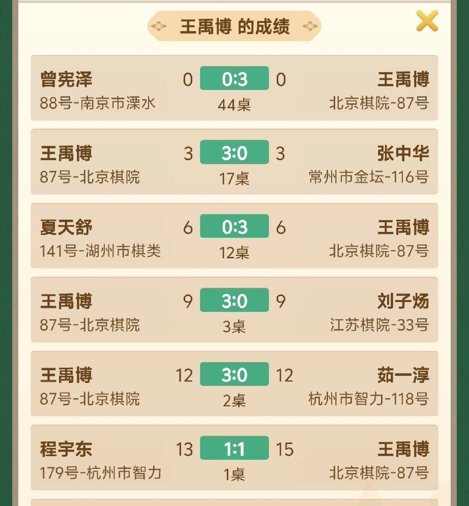 2025金陵无想杯第六轮战报:王禹博16分,孟辰14分! 战况: 王禹博5胜1平