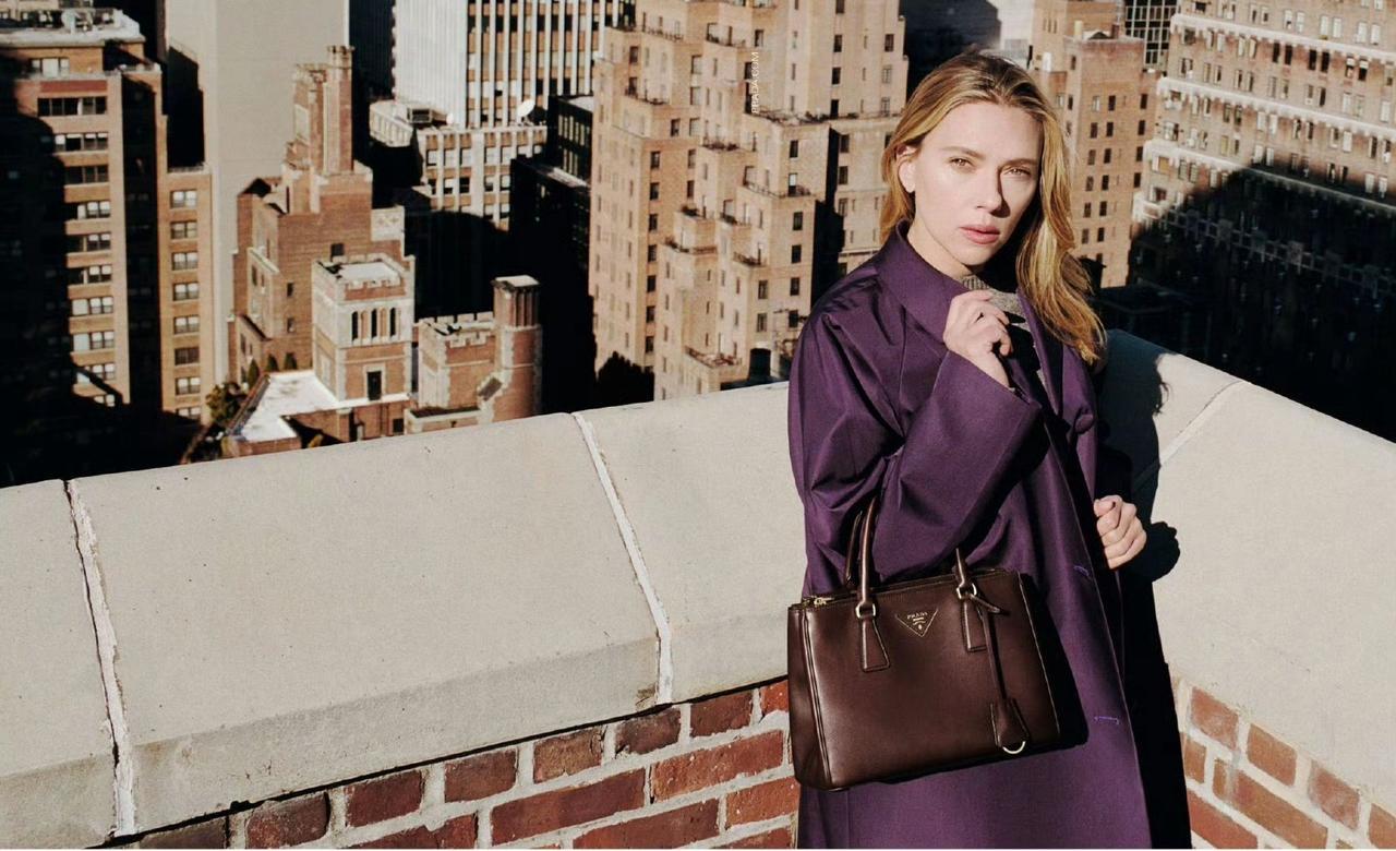 斯嘉丽约翰逊为Prada的Galleria手袋新拍摄的广告。