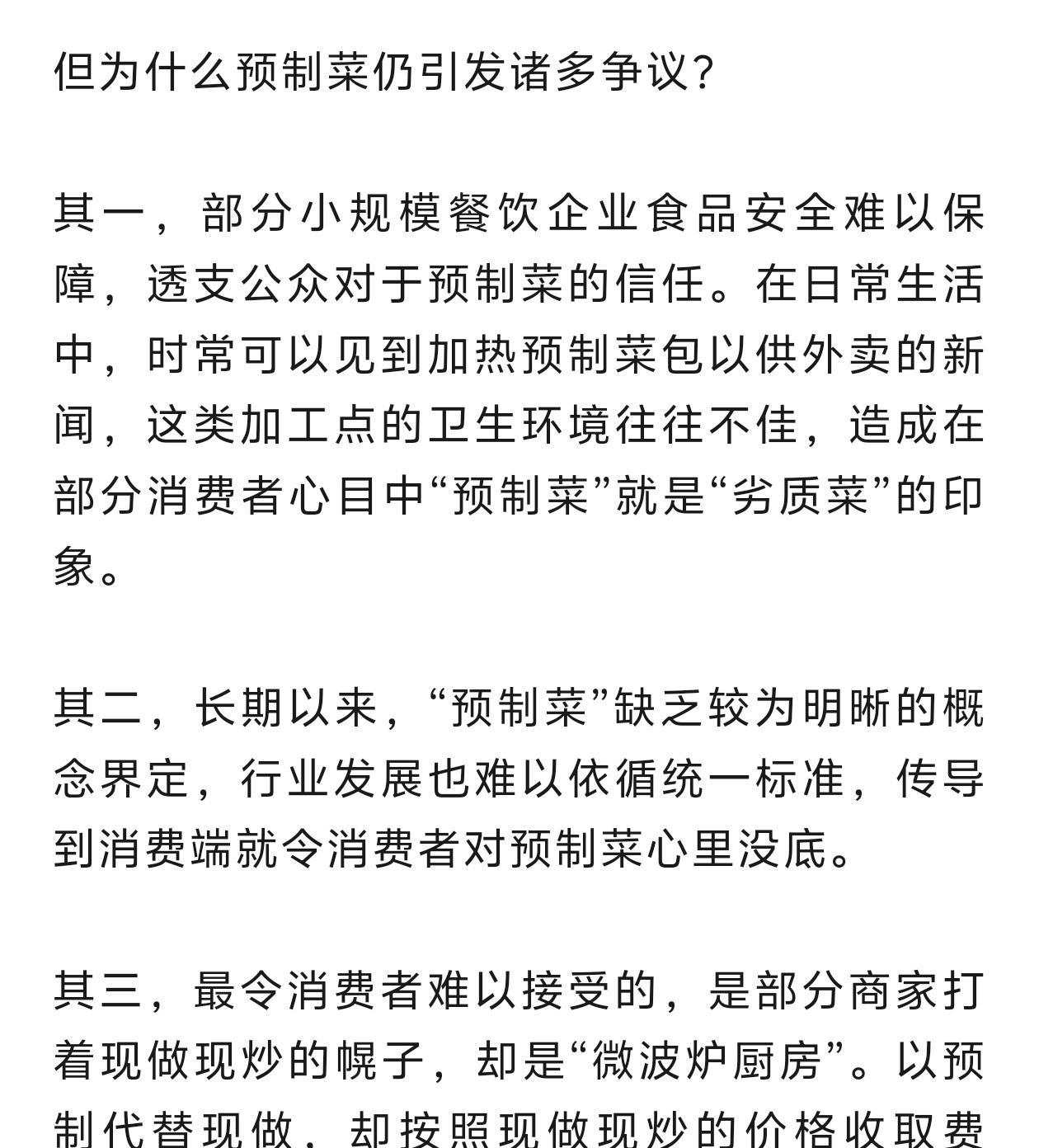 官媒不愧是官媒! 新华社深夜发文:不怕你预制,就怕你不告诉我,光是看到这个文章标题我就知道,西贝这次彻底输了,而罗永浩也在社交平台上更新动态,说西贝事件可以告一段落了,期待预制菜相关法规尽快出台。 文章主要说了两点! 第一、只要经过工业化预加工的,不管有没有配调味料包,再加热或者煮熟后就可以吃的,都属于预制菜。 第二、不能打着现炒的幌子,后厨却是微波炉厨房,还卖给消费者现炒的价格,这是最让人不能接受的。 所以总结就是西贝的菜就是预制菜,却按现炒的价格收费,这下西贝的天真塌了,不知道贾总还会继续起诉不!