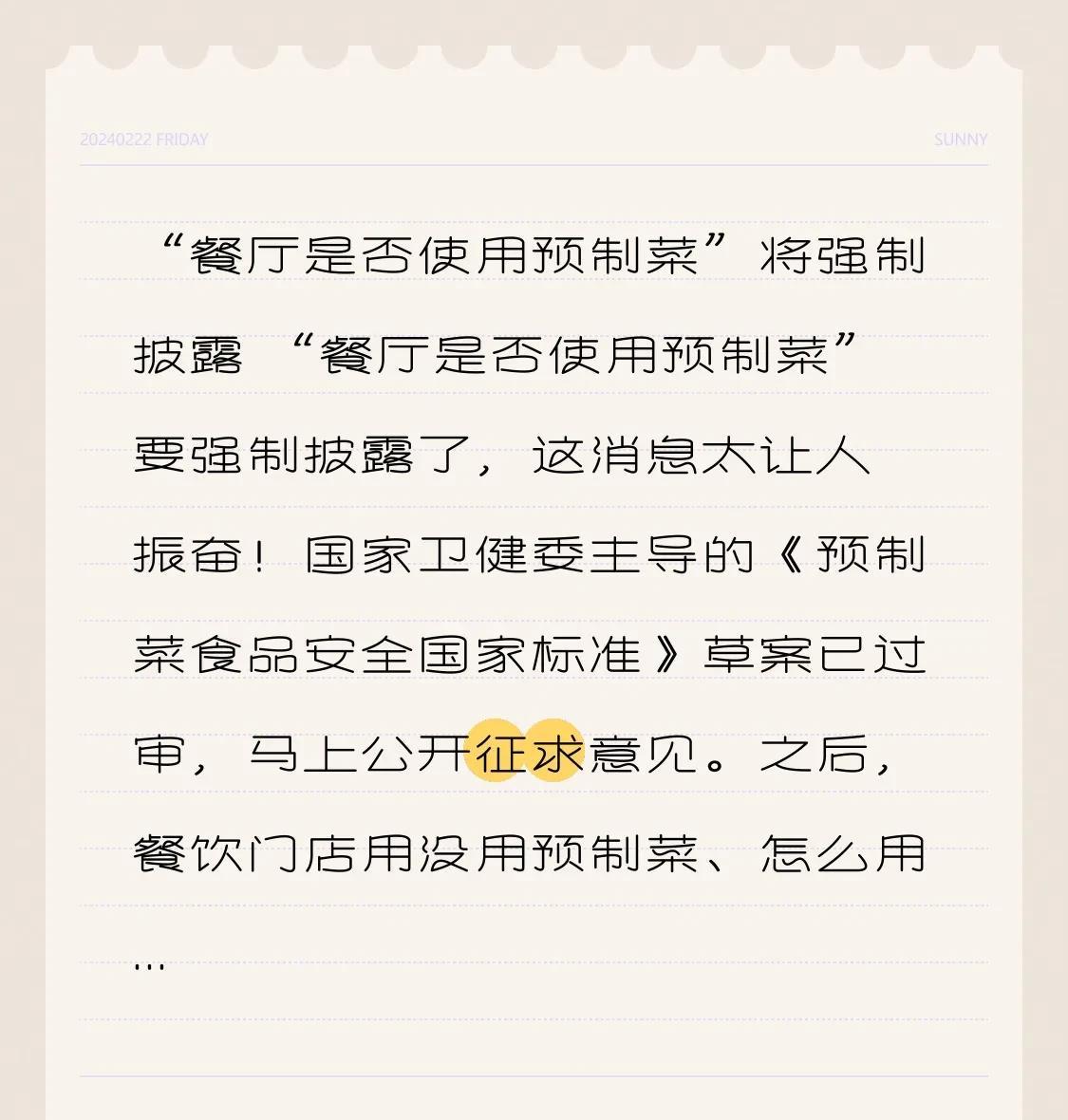 “餐厅是否使用预制菜”将强制披露“餐厅是否使用预制菜”将实施强制披露,这消息着