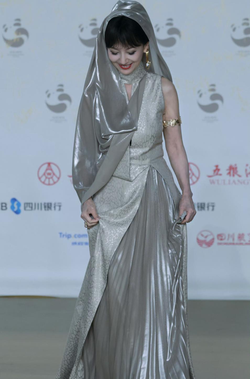 赵雅芝银色长裙亮相