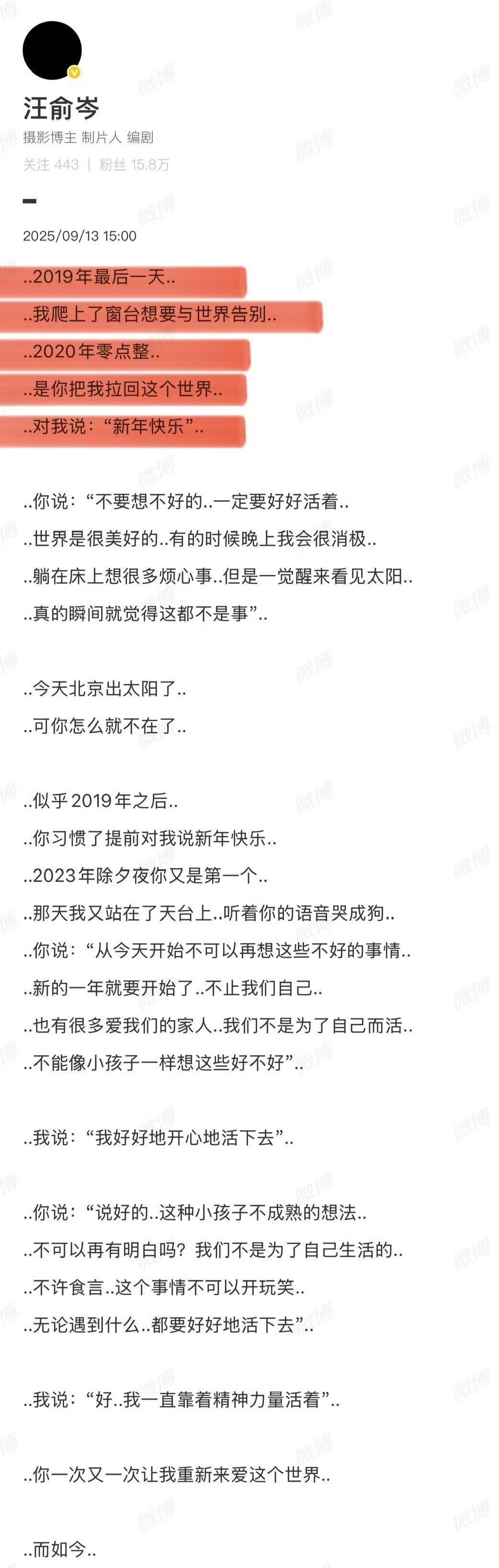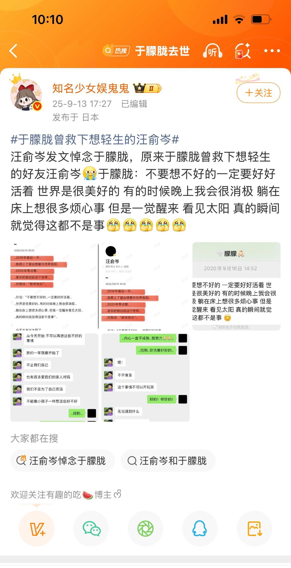 这是公司承认他们三人存在问题,所以打算撇清关系了吗? 这般劝慰他人莫要自杀的人,怎会自己纵身一跃呢! 于朦胧身为公众人物 他的骤然离世影响颇大 大众皆期望看到一份详尽的通报 唯有信息透明,方能平息质疑之声 寻常人聚餐时,若有人酒后出事,同桌者都需承担相应责任,于朦胧也不例外…… #于朦胧#
