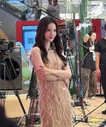 正经上班的金晨真是太美了,穿着羽毛裙仙气飘飘!