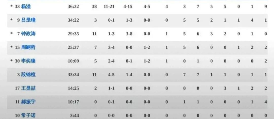 广东同省德比,广东队7分战胜深圳队! 今天上午进行的U21全国赛决赛阶段比赛,广东队以74-67战胜同省兄弟球队深圳队。 四节的比分是:18-19,34-15,12-19,10-14。广东队3人得分上双,杨溢狂砍38分,钟政涛、段锦楦分别得到11分。 广东队目前战绩是一胜两负,仍有晋级机会。与第一阶段对比,广东队人员有较大变动,陈家政、王洪泽、彰华非缺席,黄明依、李奕臻出战本阶段的比赛。