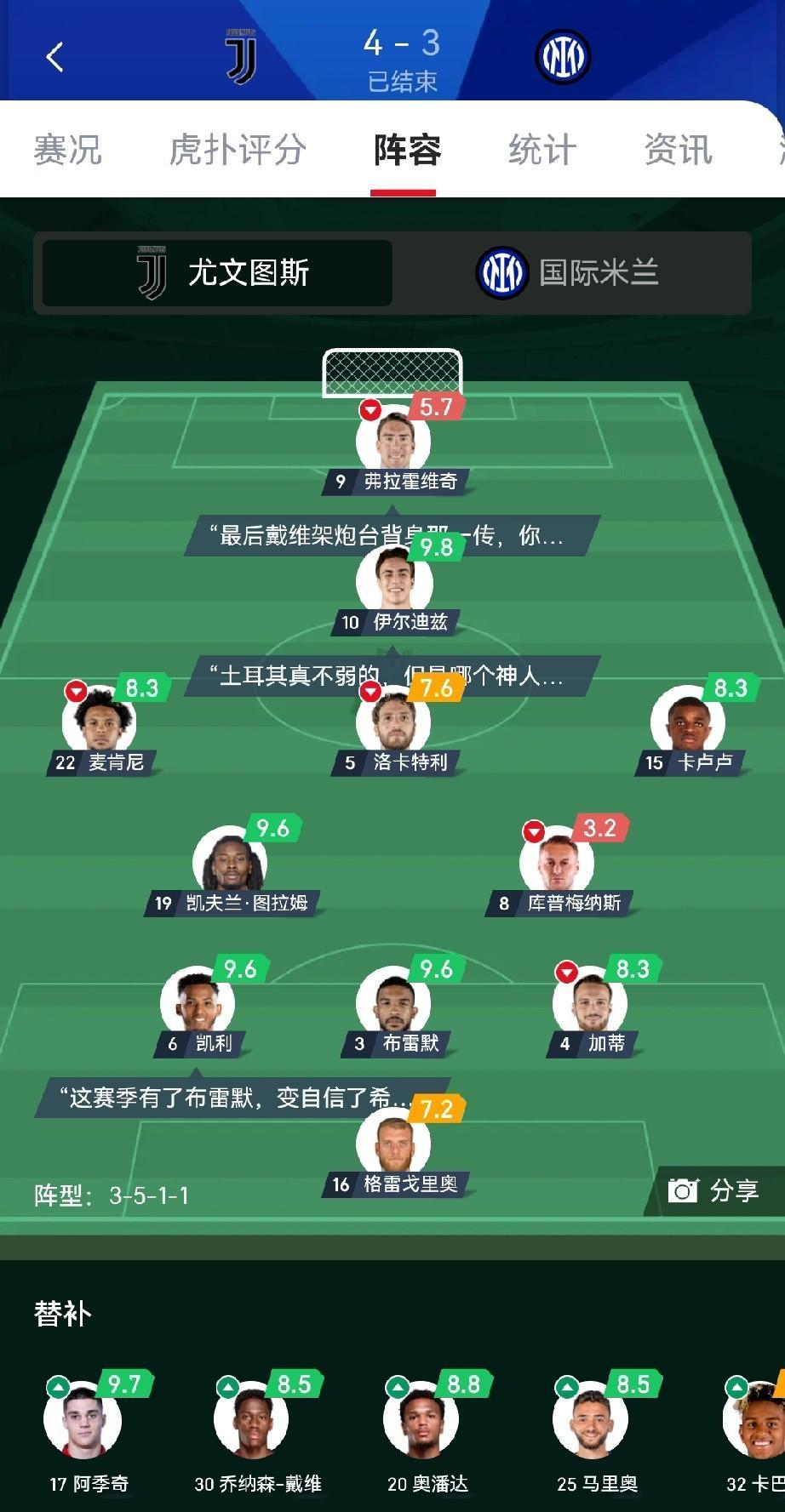 看来今年意甲就是尤文和那不勒斯争冠了!国米这台老爷车争四都难。 国米一帮30多岁的老头怎么可能踢得过尤文25岁的这帮小伙子嘛。看来国米这台老爷车离散架不远了。 不得不说这赛季小国际的防守是越来越拉胯了。中场中路的防守实在太差了,索默的状态也越来越差了。 国米的后腰、后防线和门将再不更新换代,就真的危险了。 感觉意甲的未来属于尤文的,老妇人这群年轻人真的未来可期。 看看尤文今年能不能从那不勒斯手里重新夺回意甲冠军的宝座。反正我觉得今年尤文有冠军相。