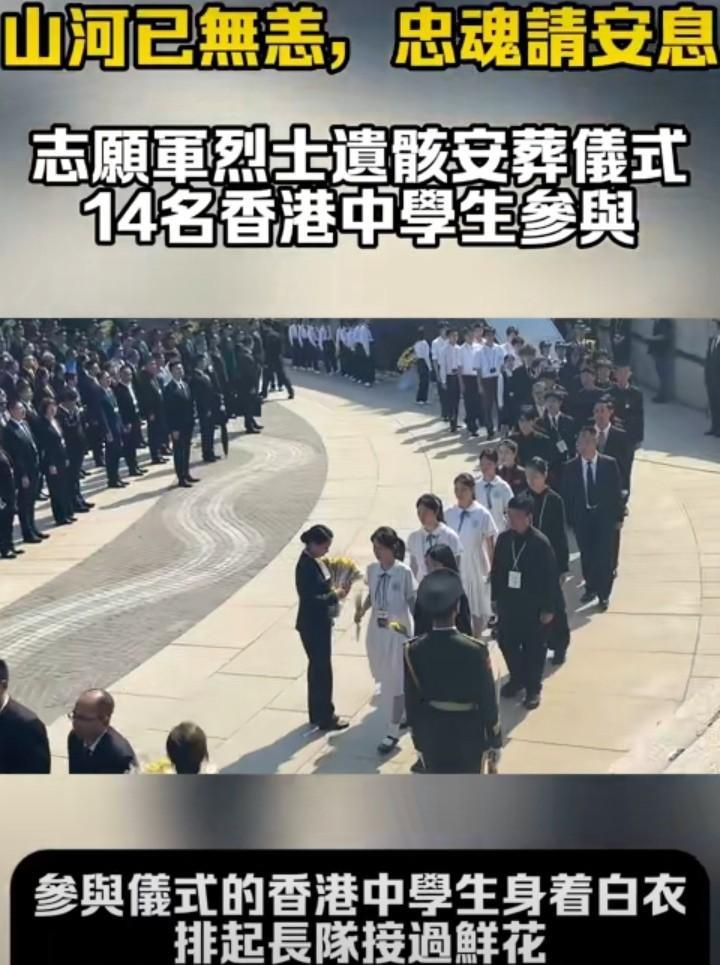 消息来源:香港大公报 9月13日,第十二批在韩志愿军烈士遗骸安葬仪式在沈阳抗美援朝烈士陵园庄严举行! 在此次迎回烈士遗骸的各项活动中,14名香港中学生也很荣幸的被邀请到了现场,亲身参与其中,同学们各个庄严肃穆依次向英名墙敬献鲜花,心怀敬意缅怀英烈! 更有同学在烈士陵园的留言板上写下自己的心愿:感谢你们的无私付出,我们会做好本分,为国报恩! 近年来,香港特区政府始终将爱国主义教育摆在施政的重要位置,以“润物细无声”的方式推动国家意识与民族认同融入香港青年的成长轨迹。 在课程改革中,特区政府修订了历史、通识等学科教材,删除了以往带有“殖民化”色彩的片面内容,新增了大量关于中国近现代史、中华优秀传统文化、宪法与基本法的章节,让香港学生从课本中就能清晰了解国家的发展脉络与民族的奋斗历程。 同时,特区政府还积极推动“走出去”的教育实践——组织香港学生赴内地参观北京故宫、延安革命纪念馆、井冈山革命根据地等爱国主义教育基地,让他们在实地探访中触摸历史的温度;与内地高校合作开展“青年交流计划”,让香港青年有机会深入了解内地的科技发展、乡村振兴成果,亲身感受国家的繁荣与进步。 这场在沈阳举行的烈士遗骸安葬仪式,不仅是一次对英烈的告慰,更是一次跨越地域的精神共鸣。14名香港中学生的参与,如同一条纽带,将香港与祖国的历史记忆紧紧相连!