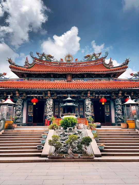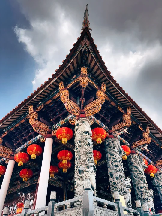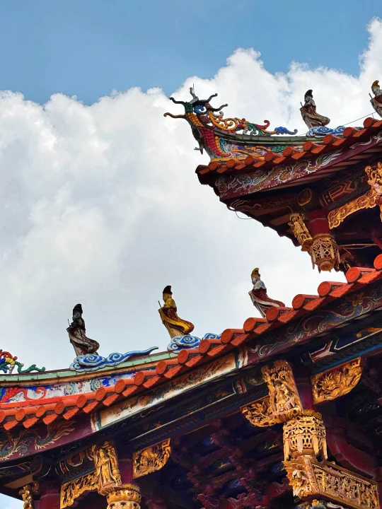 💐殿顶飞檐九条龙脊,脊上雕有老君炼丹炉、飞龙、麒麟等各种玄门饰物,精美绝伦,屋脊上衣带飘然神韵十足的众仙纷至沓来,宛如九重天上的非凡圣景。