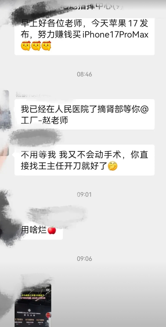 同事群竟然也有这种人!努力赚钱买苹果17!华为太贵买不起!
