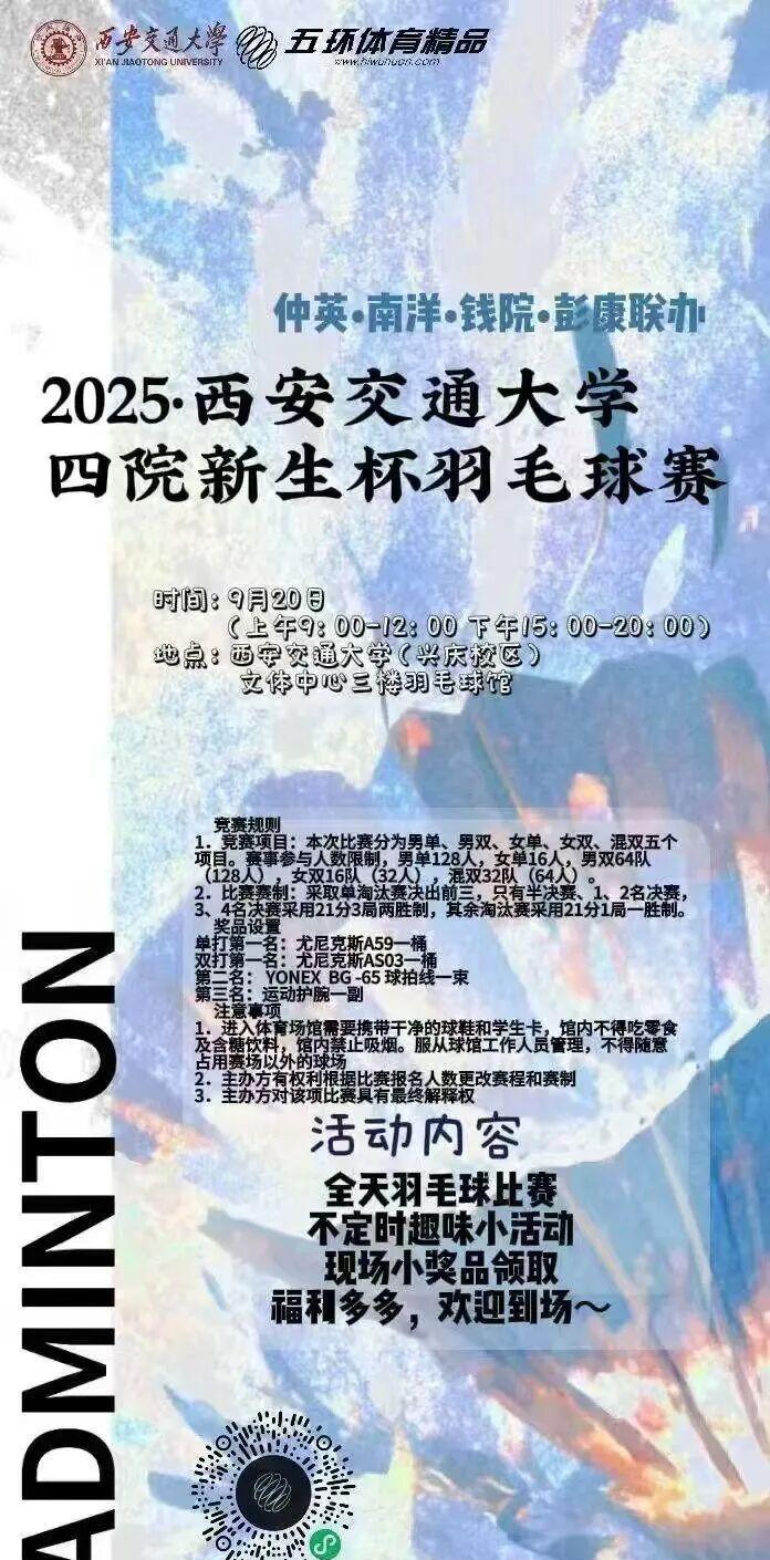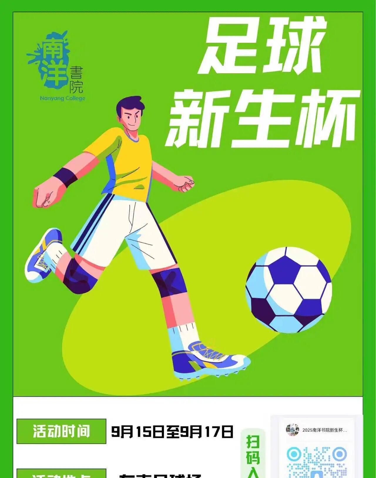 9.15-9.21南洋书院活动预告 1、新生辩论赛 所有观赛的同学和参赛的辩手们都可以获得集体活动证明。 活动时间9月20号正式开始为期四周左右 比赛时间第九节课后或周末 2、新生篮球赛 3、新生足球赛 4、新生羽毛球赛 5、融光手工坊 6、星空篮球 7、爱心书屋