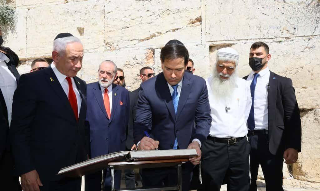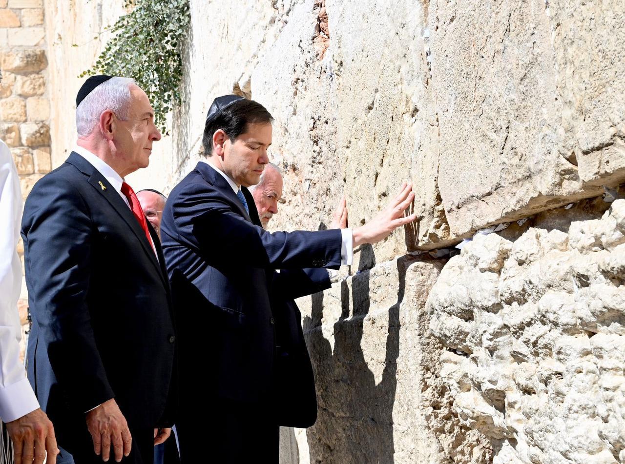 鲁比奥访“哭墙”、讲笑话。美国国务卿鲁比奥在以色列总理内塔尼亚胡的陪同下,参观耶