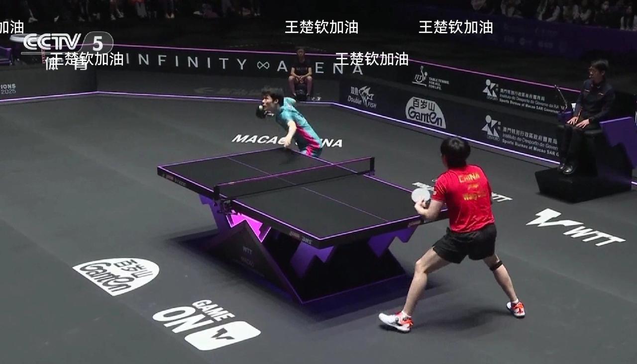 开局王楚钦适应了几个球,1:5落后,然后追到5平、8平,11:8拿下! 王楚钦台