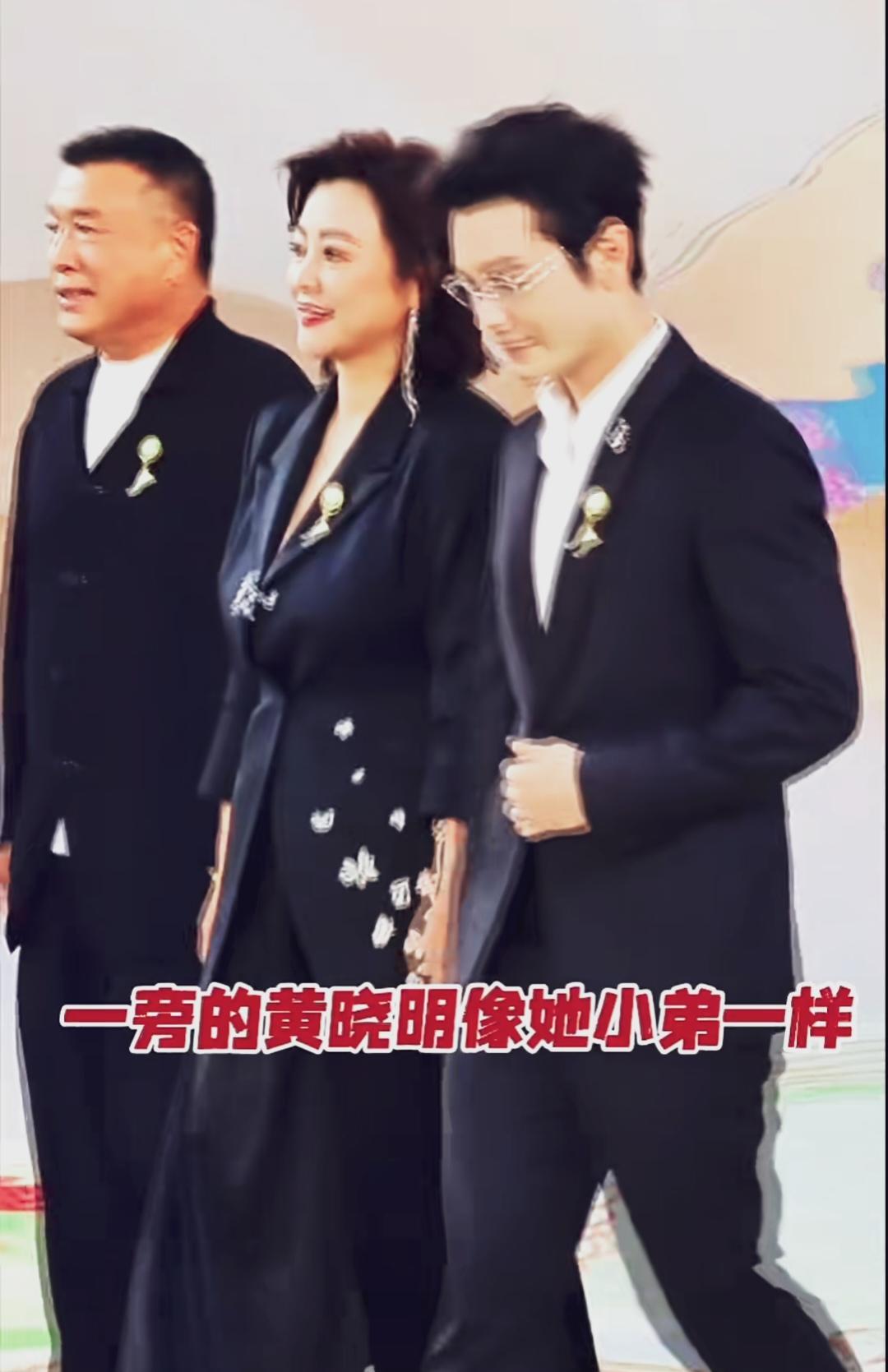 郝蕾黄晓明同走红毯,藏青色提花衣服配高开叉长裙,大秀美腿。气场全开。大明星黄晓明如小迷弟般。#郝蕾# #金熊猫奖#