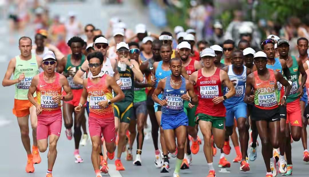 刚刚结束的东京田径世锦赛男子马拉松比赛,坦桑尼亚33岁的老将西姆布与德国选手皮特罗斯一直拼到最后的撞线时刻,最终极限绝杀原本领先的皮特罗斯,以2小时09分48率先撞线,首夺世锦赛冠军,皮特罗斯以相同的成绩屈居亚军,只是输在千分位,这在马拉松比赛中很少见,最后100米被甩开的意大利选手阿瓦尼获得铜牌。代表中国出战的三名选手,成绩最好的是全国纪录保持者、杭州亚运会冠军何杰,他以2小时14分52排名第26位,同为33岁的杨绍辉和吴向东排名第30位和第31位。
