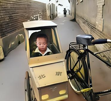 1984年,北京街头出现的一幕。爷爷骑在车上,小孙子下车后推车。这辆自行车也是爷爷亲自改装的。自行车右边加上了一个车斗与一个车轮。这样,爷爷骑着自行车就可以载着小孙子。小孙子坐在车斗里风吹不着,雨淋不到。 当时,北京的街头出现大量的改装车。这种改装车被称为跨斗。不论孩子上学还是放学,大人都会骑着跨斗送孩子接孩子。 这一天,爷爷骑着跨斗载着小孙子出门。可是,到了上坡的时候,小孙子主动提出要下车帮助爷爷推车。爷爷并没有拒绝小孙子的要求。小孙子推得相当吃力。 可是,他不知道如果爷爷不蹬车,车纹丝不动。爷爷一边慢慢地蹬车,一边回头看着卖力推车的小孙子。当车子上了坡后,孙子定会认为是自己推上去的,爷爷也会称赞孙子。