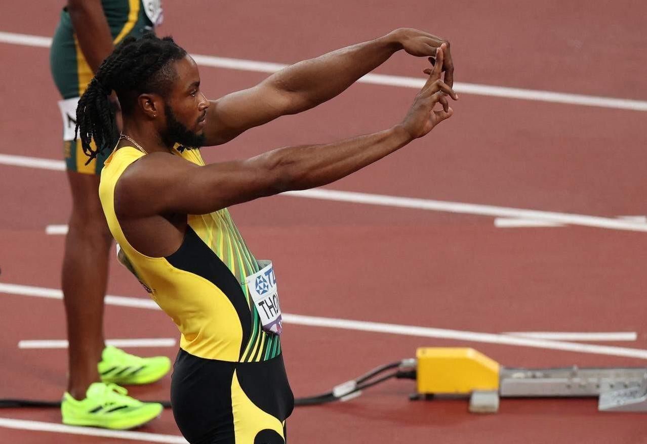东京田径世锦赛男子100米决赛,24岁的牙买加新星奥布利克·塞维尔在看台上的前辈