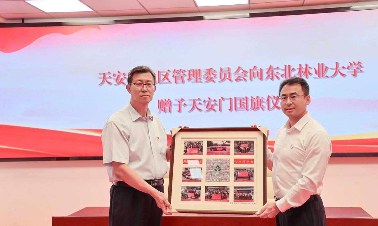 2025年9月11日东北林业大学获赠一份珍贵礼物-2022年7月10日东林70周年校庆日当天在天安门广场升挂过的国旗由天安门地区管理委员会赠予。 赠旗仪式上,姚辉代表北京市天安门地区管理委员会向东北林业大学赠送天安门国旗,张春雷代表学校和全校师生接受赠予。双方共同签署了天安门国旗赠予协议。 这面来自天安门广场的五星红旗将在学校校史馆序厅设置专门展示区域永久珍藏。 学校还将严格按照《中华人民共和国国旗法》有关规定定期进行规范展示。