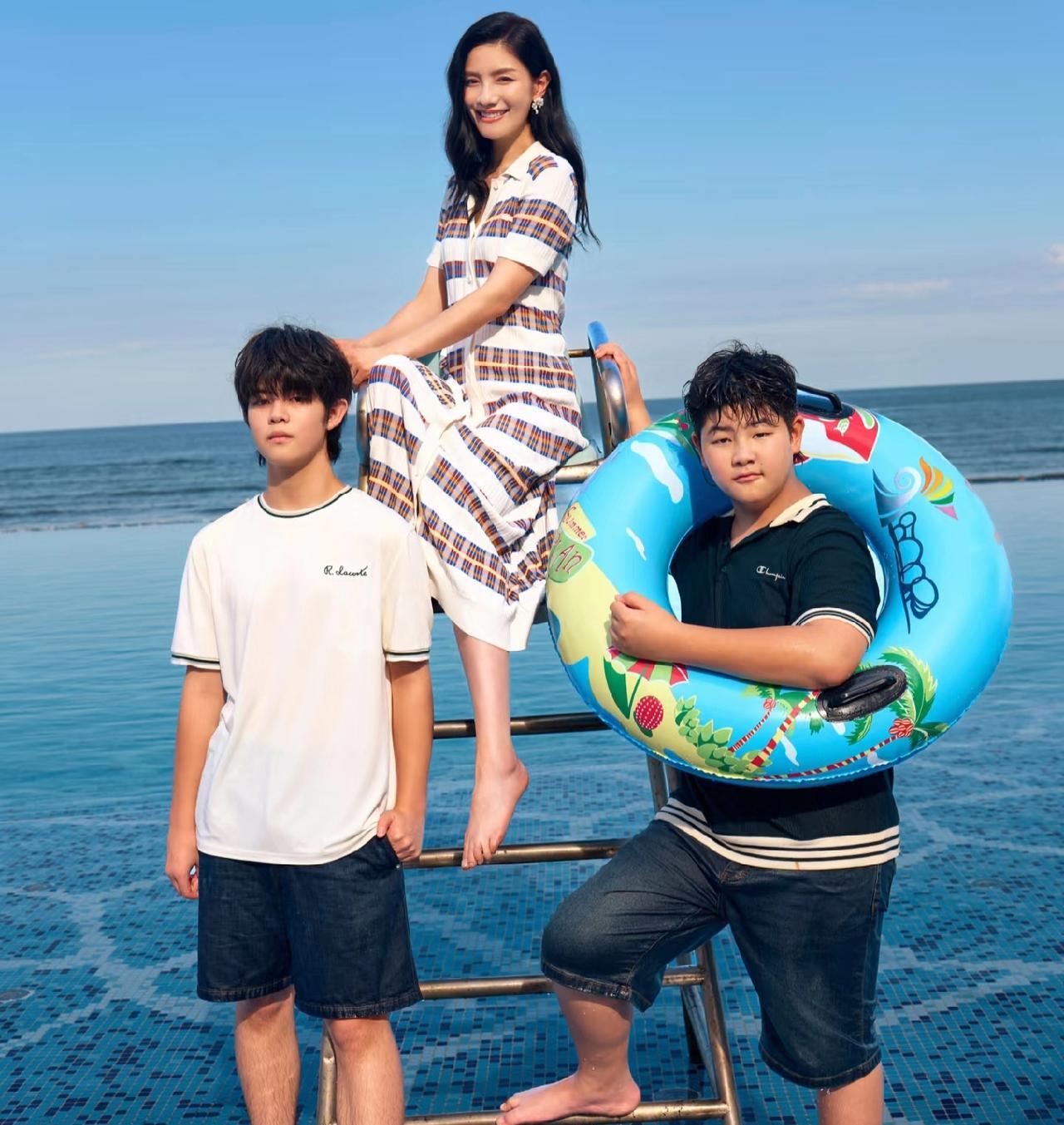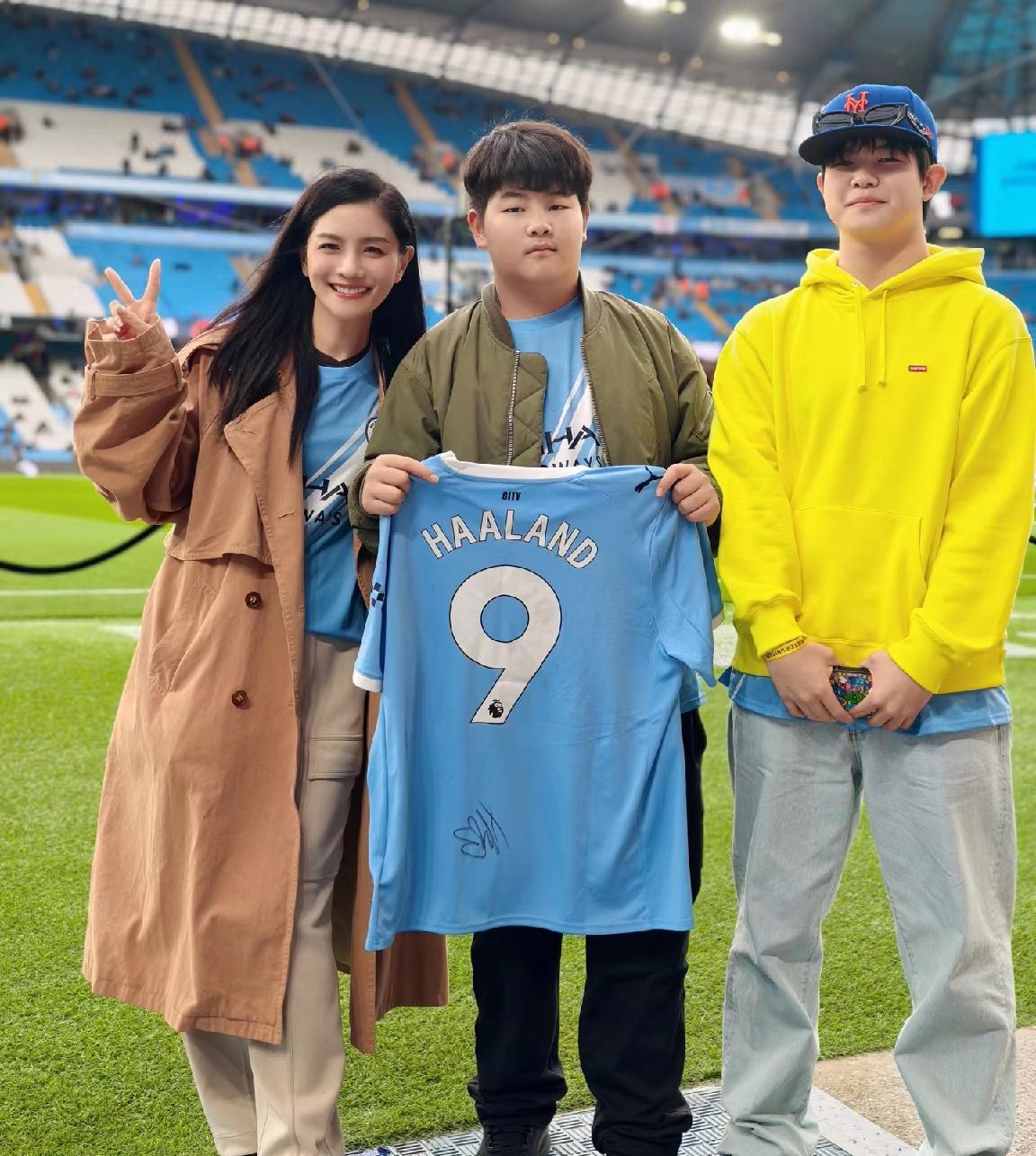 胡可带两个孩子去英国看球赛,安吉真的好帅,好像宋仲基!不愧是沙溢和胡可的孩子,真