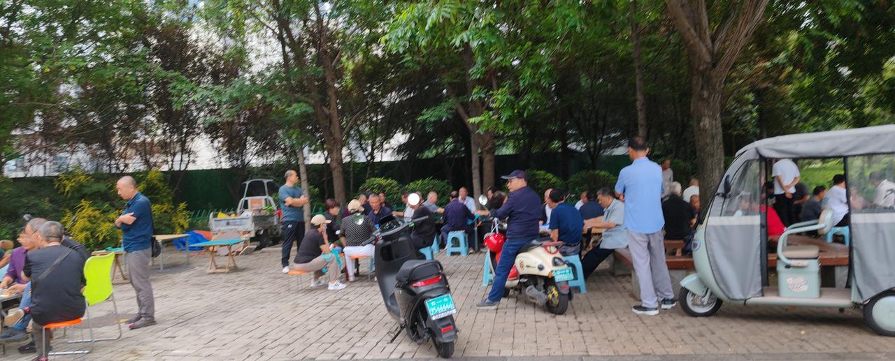 #秋日生活打卡季#马路边休闲处坐满退了休打牌的老人…