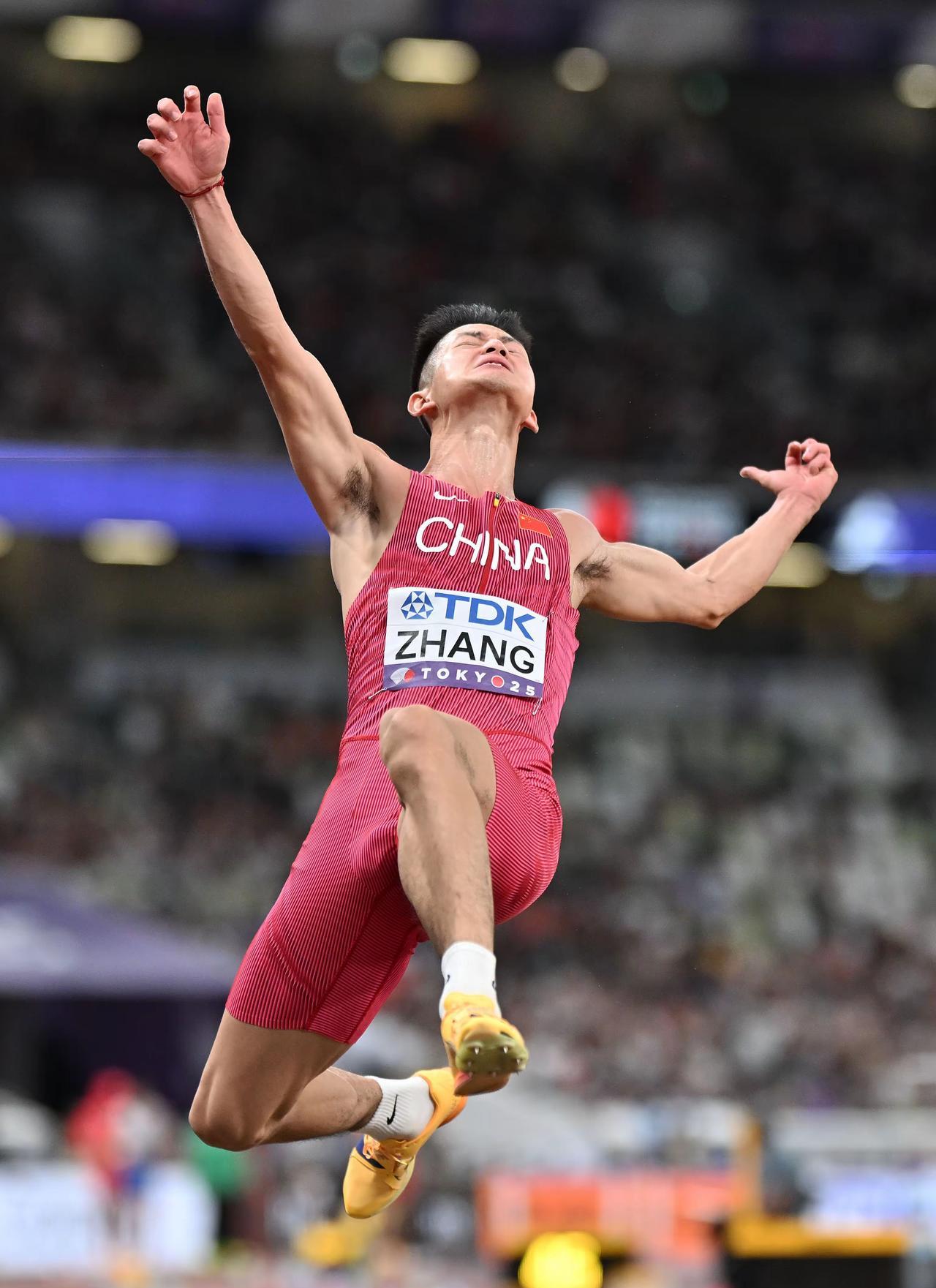 东京田径世锦赛男子跳远资格赛,中国队三位选手出战,石雨豪和张溟鲲分别跳出8.08