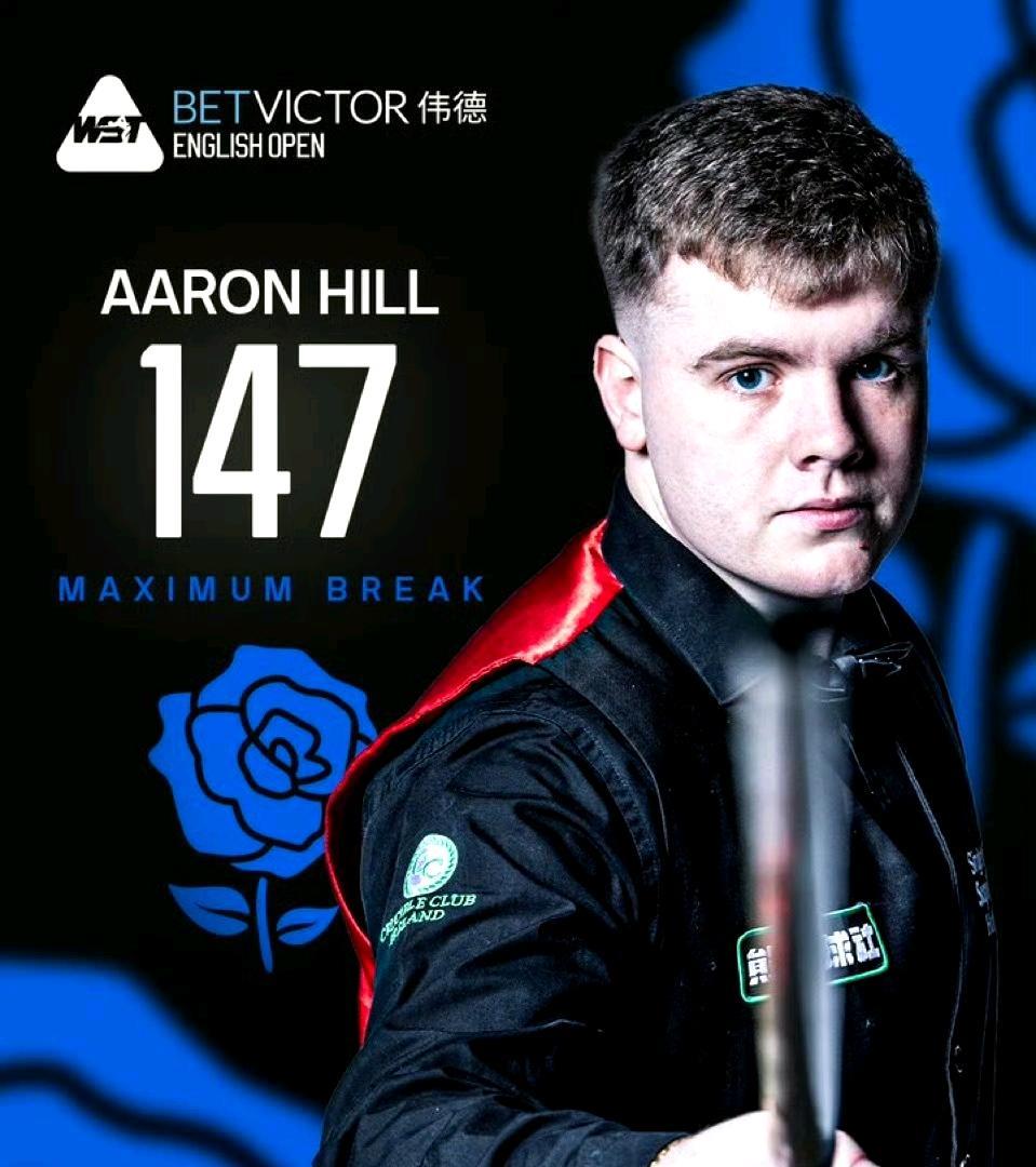 本赛季第9杆147来了!2025斯诺克英格兰公开赛第二轮, 亚伦·希尔4-2战胜