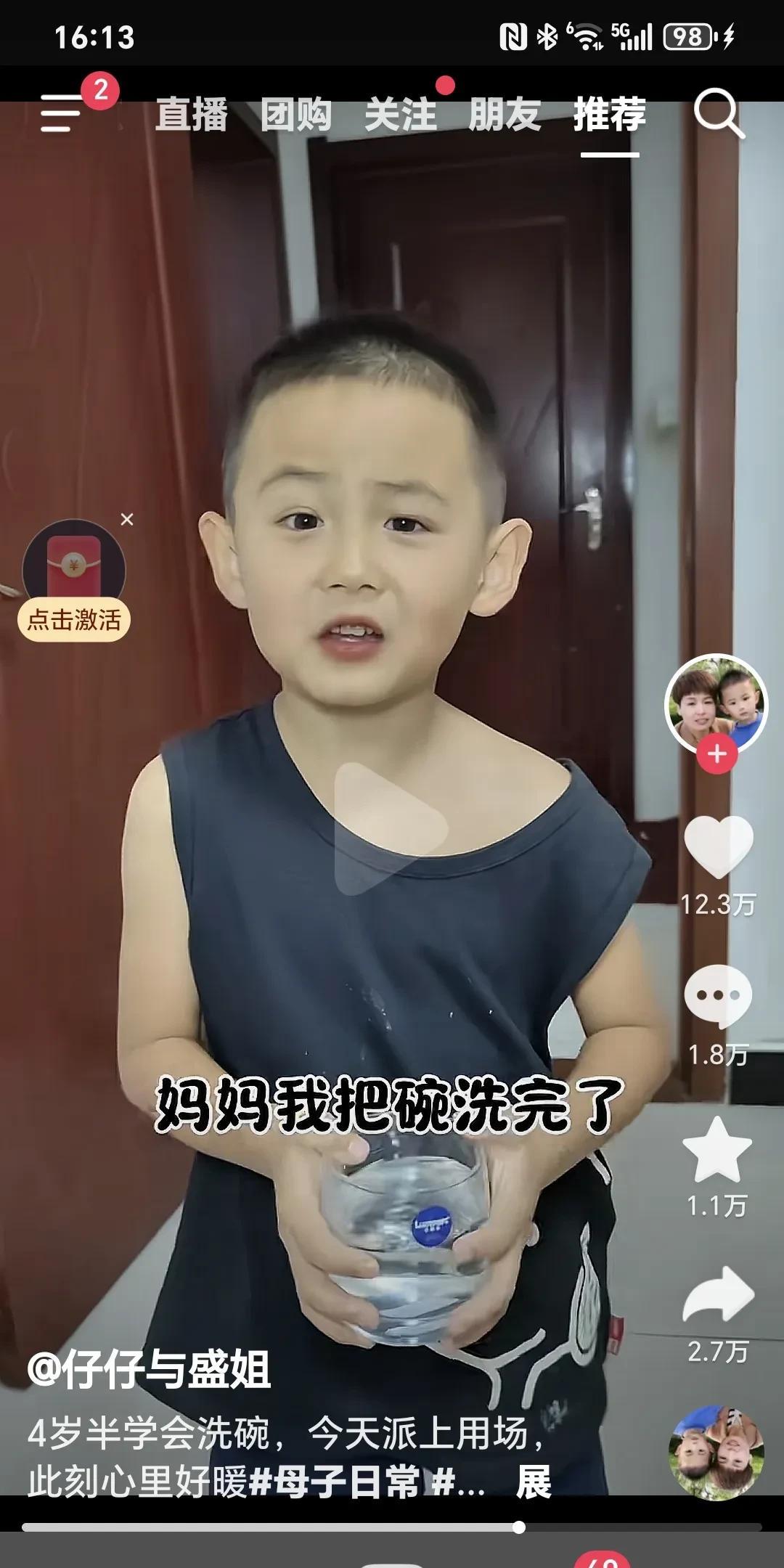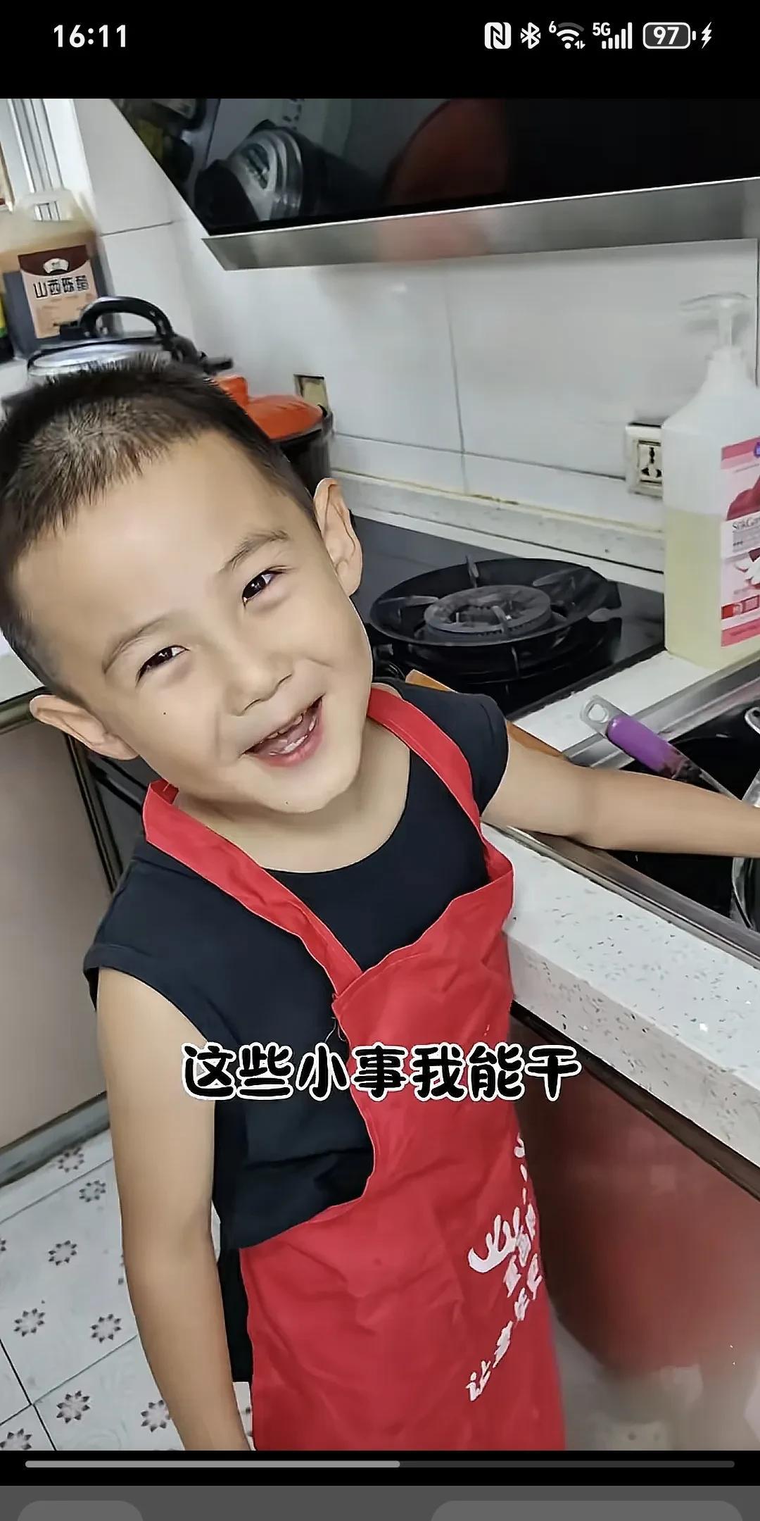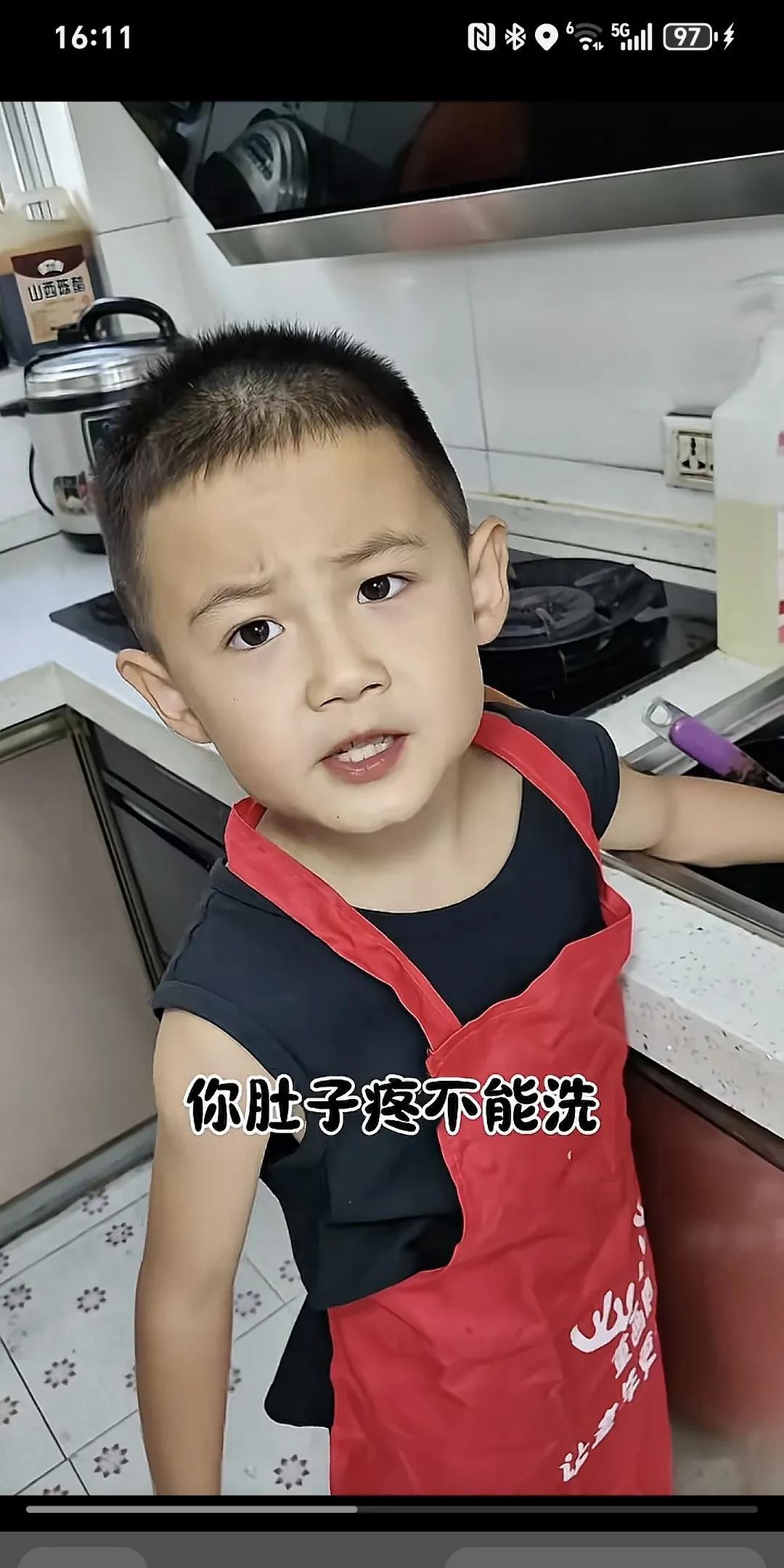 你在做啥呢?仔仔来了,妈妈,你赶快躺着去呀,你不是肚子疼吗?你在洗碗呢啊,平常都是你照顾我,现在你生病了,该轮到我来照顾你了,你赶紧休息去吧,等我把这些东西洗完了,我就过来啊,你放在那儿,一会儿妈妈自己洗,你肚子疼,不能洗,我现在已经长大了,这是小事情,我能行的,去吧,你快点休息去吧啊,那我休息去了。嗯,我把碗洗完了,你肚子还疼吗?好多了,快喝点热水。谢谢你把我照顾得这么好。你现在生病了,我要是连这点小事情都做不好的话,那我长大还有什么意义呢?啊,亲一个亲一个嗯。 这孩子真懂事,长得帅小嘴也会说话,长大必定是个暖男…