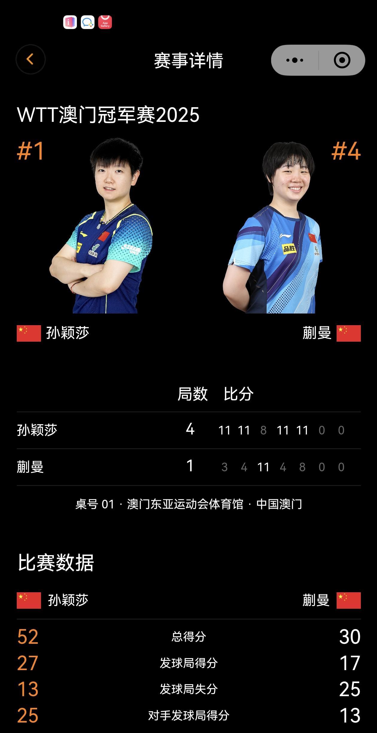 通过澳门冠军赛,看看孙颖莎比赛的最后1-2局的比分吧,这才是真正实力比拼吧! #孙颖莎#