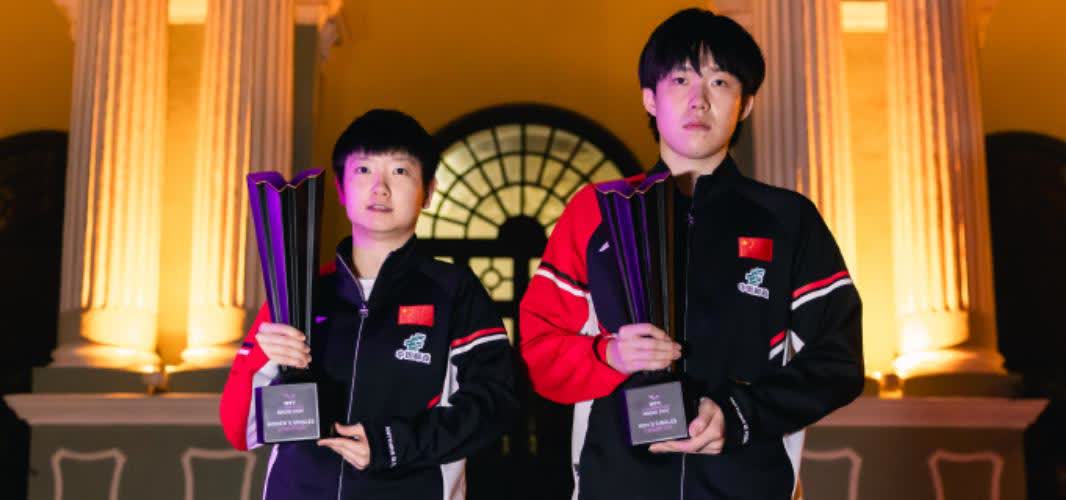 恭喜!王楚钦孙颖莎宣传照 9月14日,WTT澳门冠军赛,孙颖莎、王楚钦分别获得